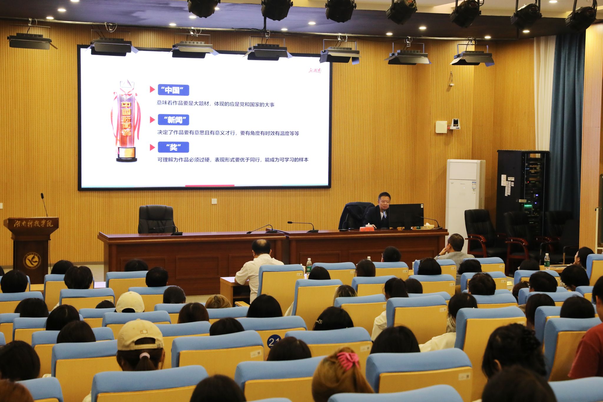 本网讯(通讯员 彭晥君 逄宇鸣)10月30日,湖南日报社党组成员、社务委员、副总编辑颜斌应邀来校作题为《从7年12获中国新闻奖看移动传播时代新闻学子应具备的3种能力》的学术讲座。