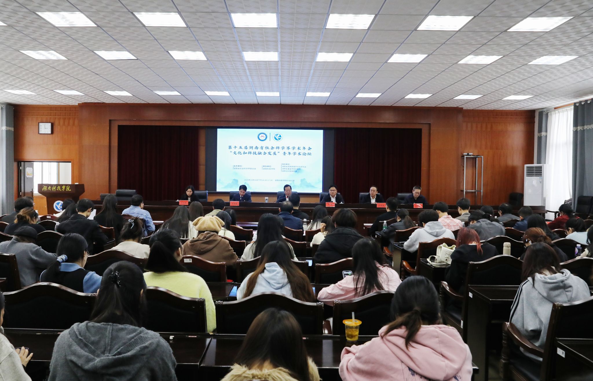 本网讯(通讯员 黄渊基 摄影 谢志豪)10月31日,第十五届湖南省社会科学界学术年会“文化和科技融合发展”青年学术论坛在我校举办。活动由湖南省社科联主办,由我校承办。省社科联党组书记、副主席(主持日常工作)胡代松出席会议并讲话,永州市委宣传部副部长、市政府新闻办主任、市新闻出版局(市版权局)局长欧春涛,校党委书记李钢,党委委员、副校长李常健,永州市社科联主席陈水恩等出席会议并为优秀论文作者代表颁发证书。