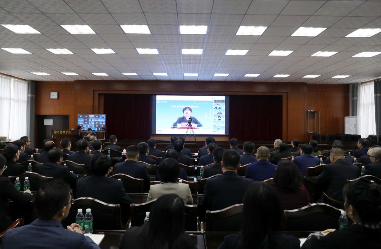 本网讯(记者 孙淑娴)10月31日,我校在行政楼八楼一会议室召开本科教育教学审核评估启动会,会议采用线上线下相结合的方式进行。湖南省教育厅二级巡视员王红冰,专家组组长、江苏师范大学原副校长钱进、专家组全体成员出席会议,全体校领导、各职能部门主要负责人,二级学院院长、党总支书记,教务处、评估办全体成员参加会议。
