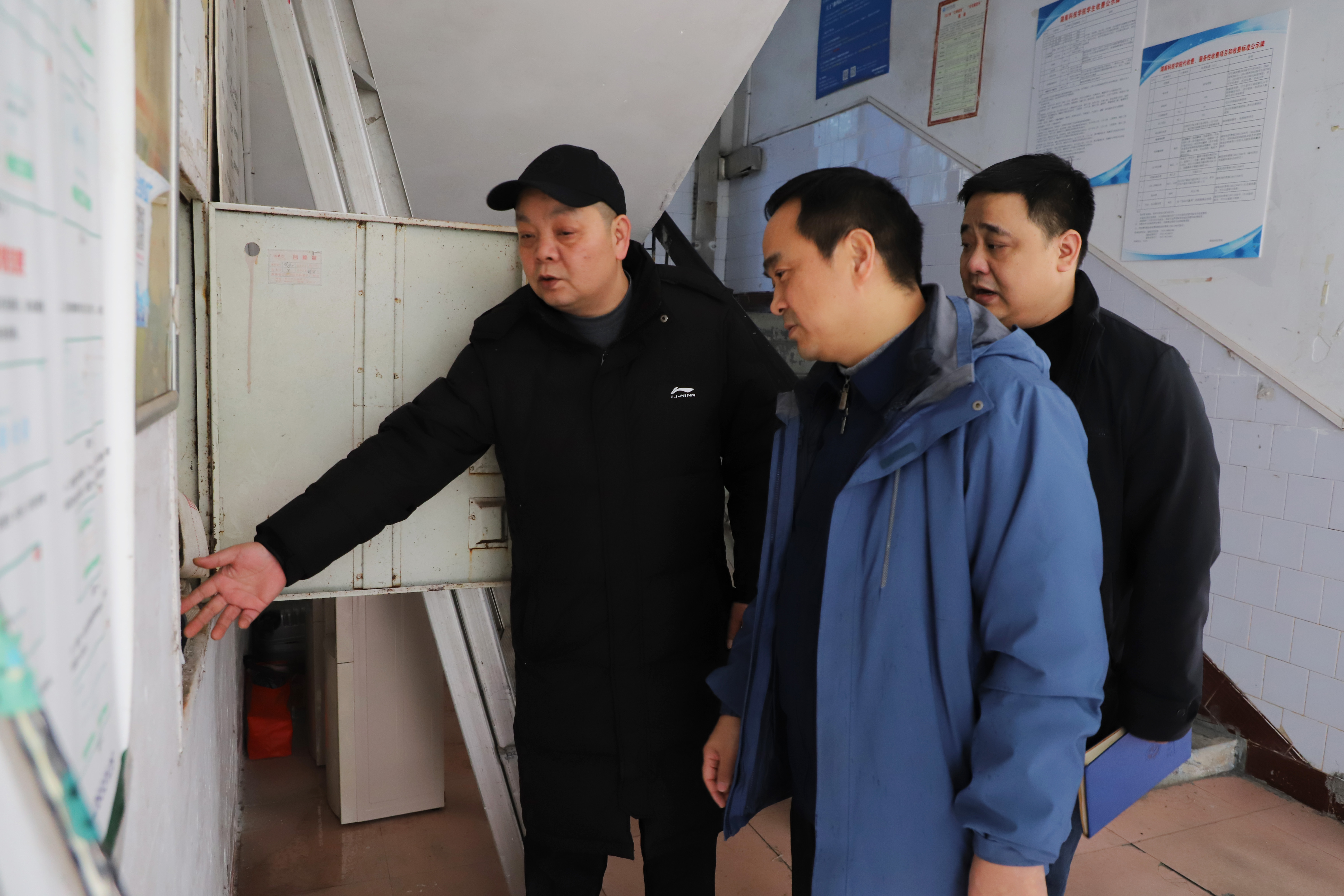 本网讯 1月11日,党委副书记、校长黄创霞带队开展校园岁末年初安全生产检查,党委委员、组织部部长杨涛,保卫部、后勤服务中心有关负责人参加检查。
