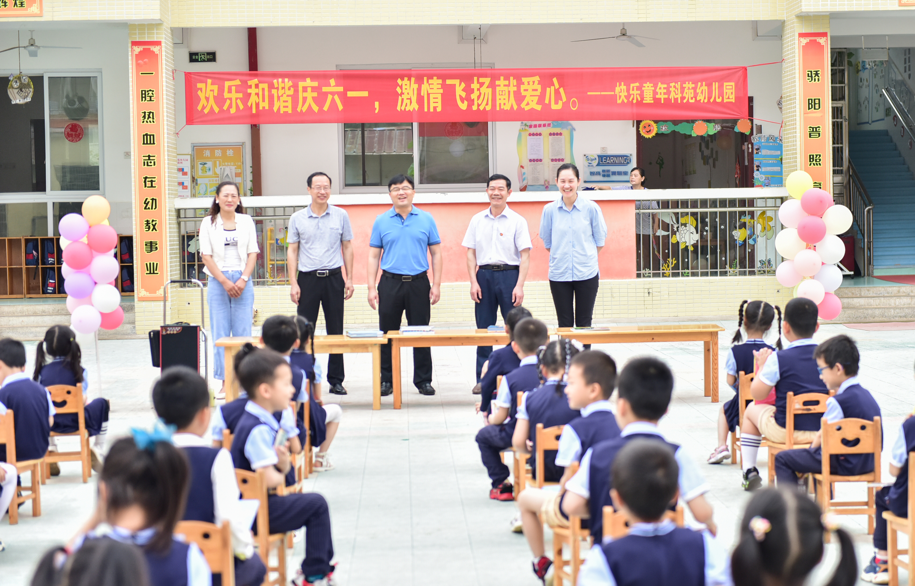 本网讯 “小朋友们,儿童节快乐呀!”6月1日,校长李钢,副校长、工会主席吴小林来到科苑幼儿园,与小朋友们欢度“六一”儿童节。