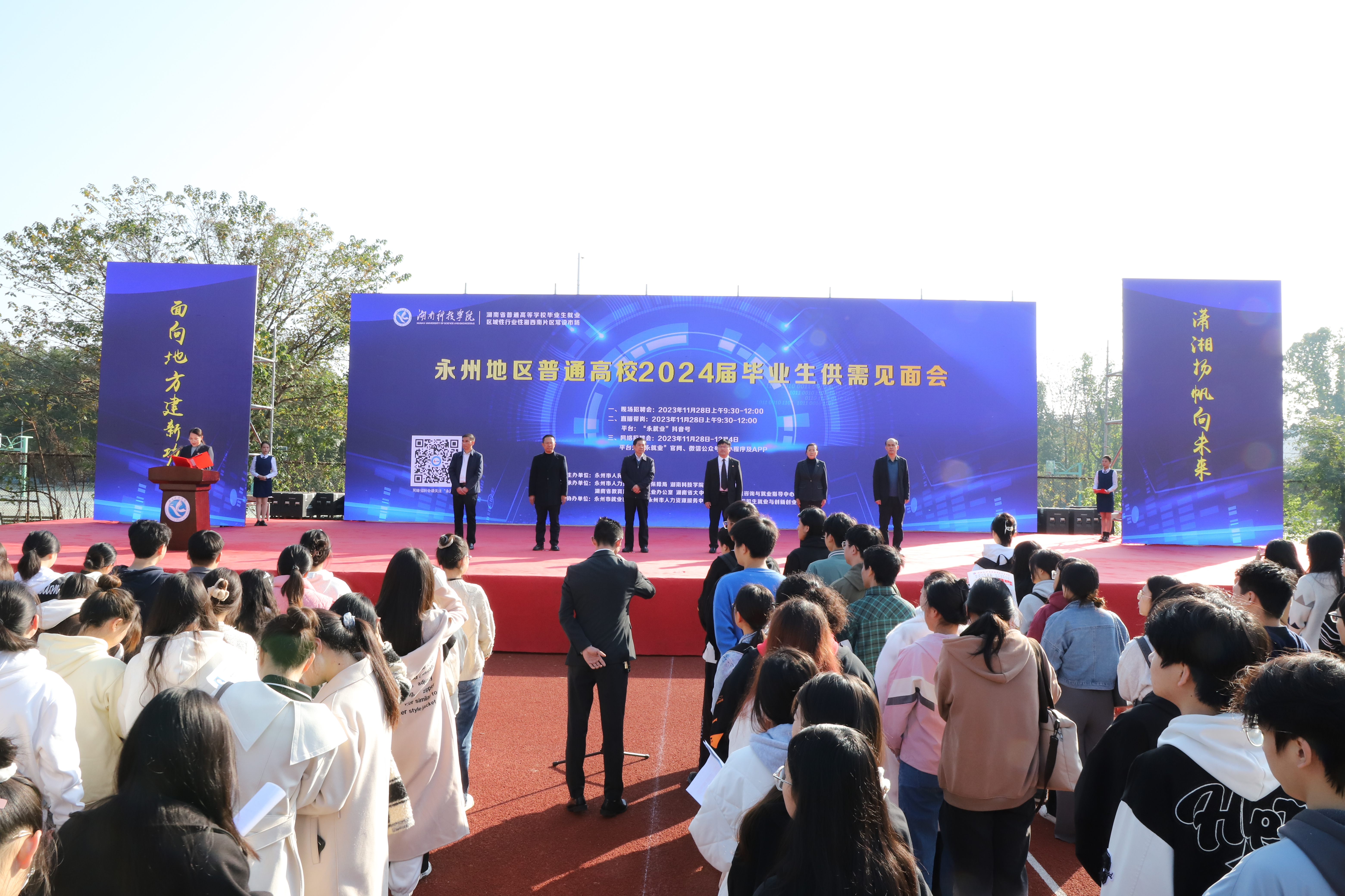 本网讯(通讯员 龙泉)11月28日上午,由永州市人力资源和社会保障局、永州市教育局与我校共同举办的永州地区普通高校2024届毕业生供需见面会在我校小田径场举行。见面会共吸引了来自省内外的181家优质用人单位参会,为毕业生提供就业岗位6400余个。