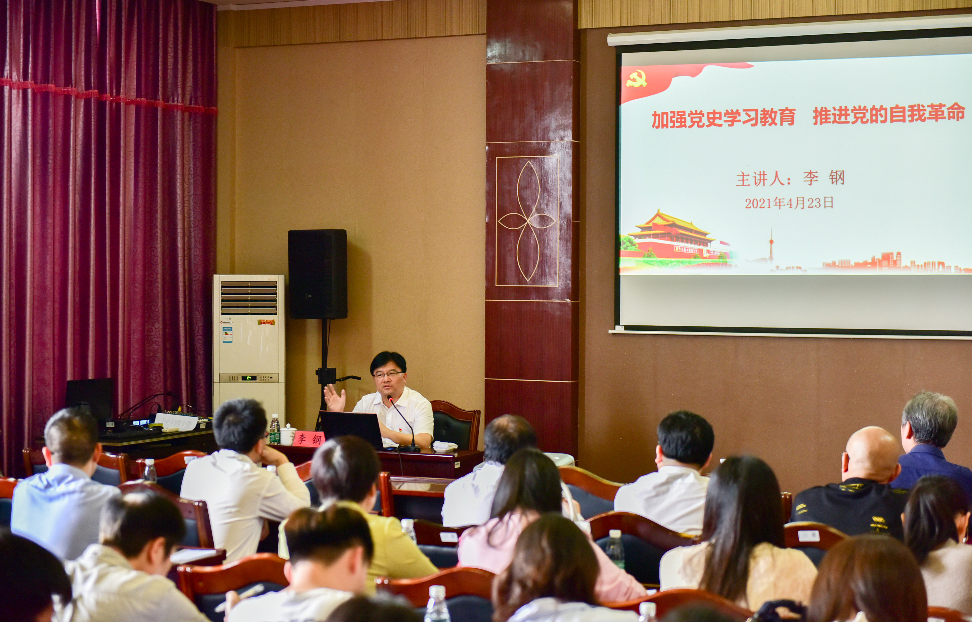 曾宝成、李钢以《加强党史学习教育 推进党的自我革命》为题,围绕“勇于自我革命是我们党最鲜明的品格”“我们党推进自我革命的实践成效和宝贵经验”“新时代把党的自我革命推向深入”三个方面,通过大量的理论分析和史实故事,引导师生进一步坚定理想信念,筑牢思想根基,充分发挥先锋模范作用,以实干献礼百年伟业,用奋斗致敬伟大时代,在赓续红色血脉中坚守初心使命。