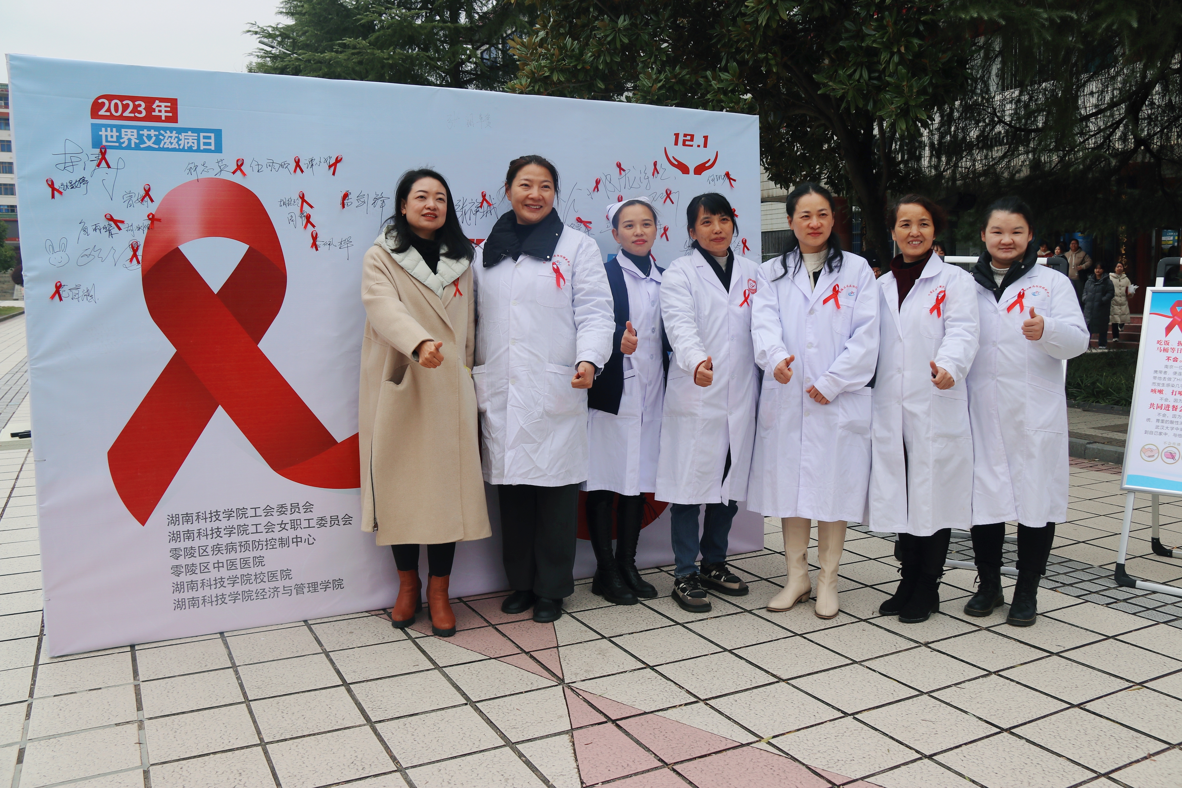 本网讯(记者 罗立可)12月1日,是第36个“世界艾滋病日”。我校工会、工会女职工委员会联合零陵区疾病预防控制中心、零陵区中医医院、校医院、学校经济与管理学院组织开展“世界艾滋病日”宣传教育活动。