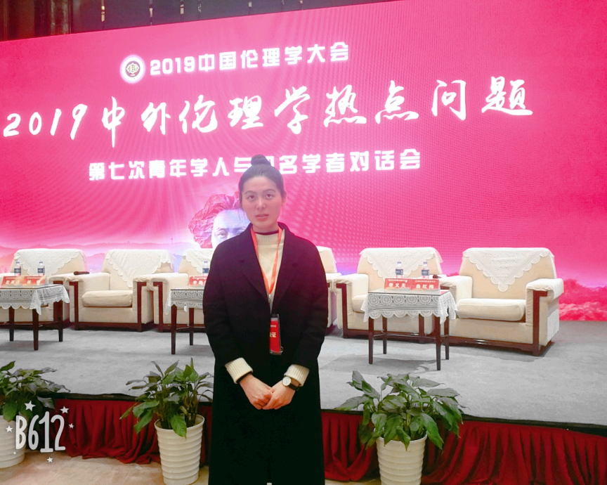 此外,干娇娜十分热爱学术研究,曾独立撰写《网络剧失范现象带来的伦理问题思考》,并作为唯一本科生参加2019 年中国伦理学大会。参加伦理学大会不仅拓宽了她的眼界,感受到真正学术讨论的氛围,同时促使她坚定考研的决心。