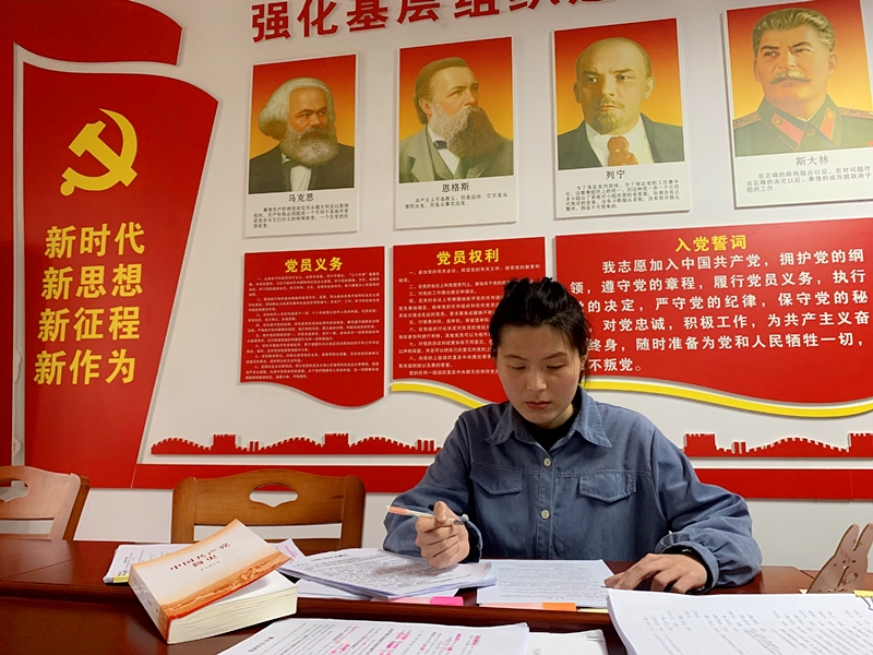 大二,干娇娜在马克思主义学院院长廖雅琴的指导下,参加全国高校大学生讲思政课公开课比赛。利用暑假假期,在确立《抗日战争时期游击战的战略地位》这一选题后,她和搭档孙梦芝同学立马围绕主题思想开展准备工作,查找大量的资料和相关教案,并提取要点。确定选题大纲,分工拟写初稿,修改完善教案……她们每天改,每天磨,互相探讨,相互鼓励,终于进入磨课阶段。