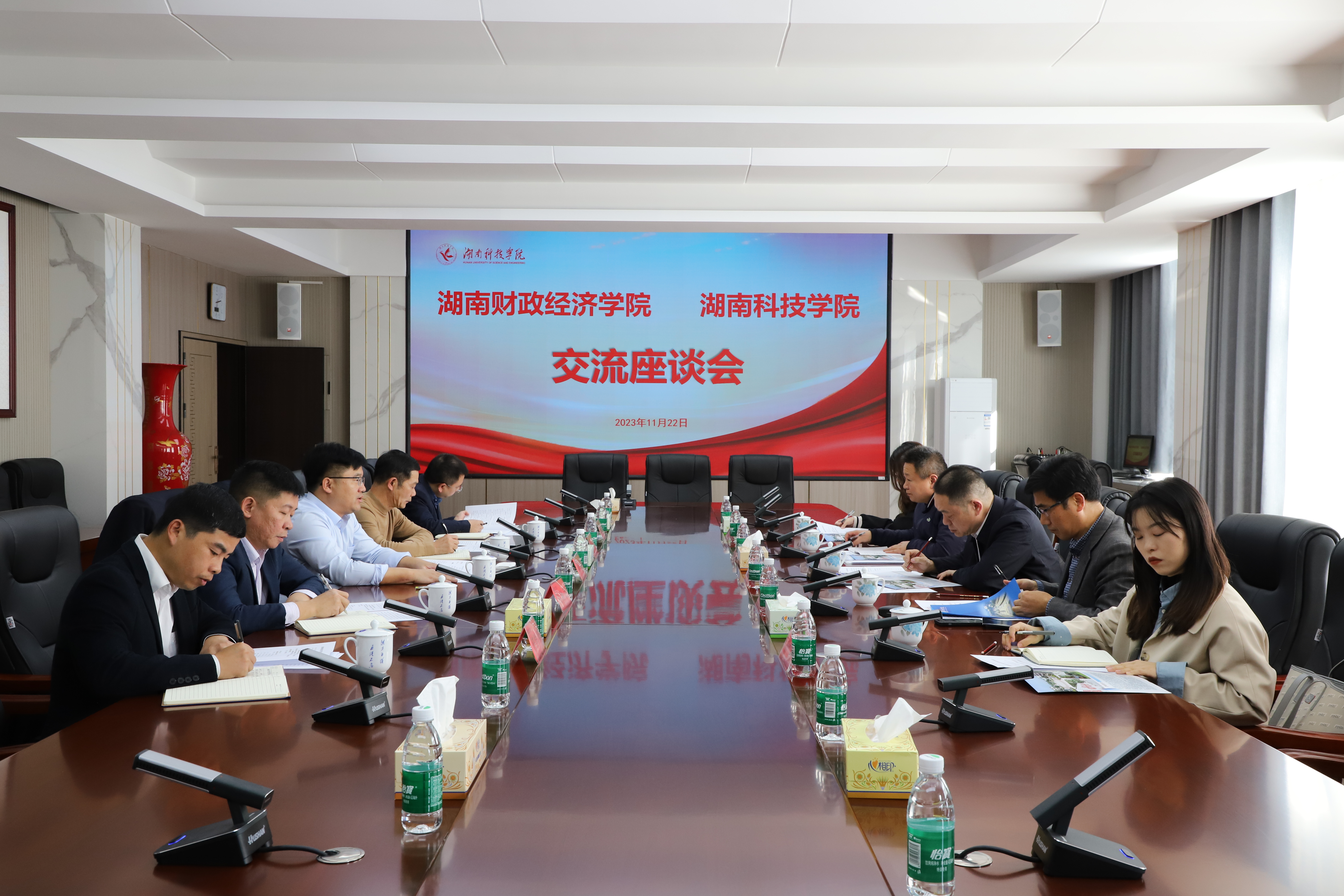 本网讯 11月22日至23日,湖南财政经济学院原党委书记、湖南省劳动教育研究基地负责人肖湘愚来校交流调研,党委书记李钢,党委委员、副校长吴小林参加交流座谈会,会议由吴小林主持。