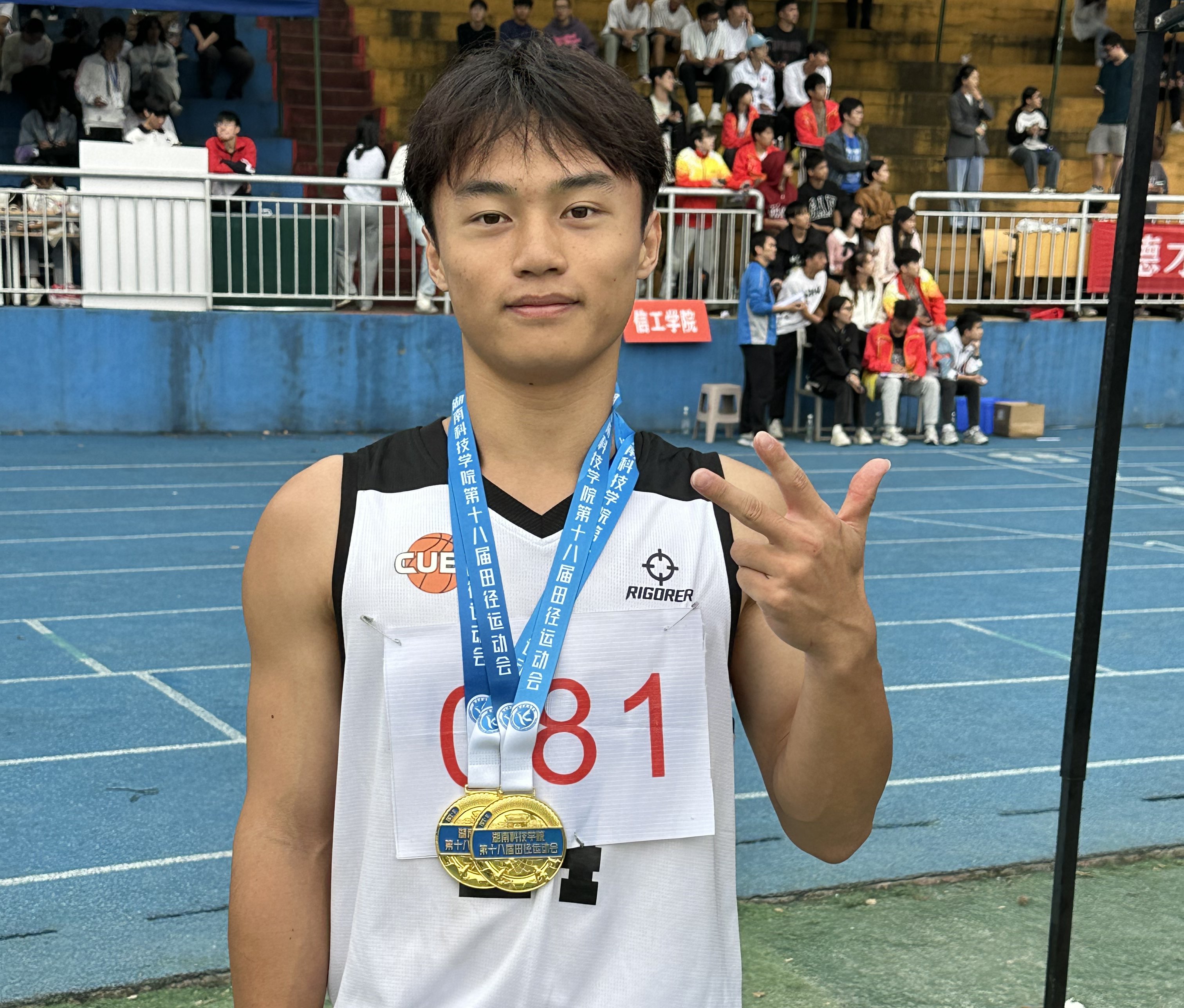 “没辜负老师同学们的期待,为学院拿了个冠军,也算是不辱使命了”何仕建激动与兴奋地说。此前他参加的都是100米项目,由于今年400米参赛人数不足,临时参赛,在不断地训练下取得了优秀的成绩。他表示会加紧训练,以更努力的姿态朝更高处进发。