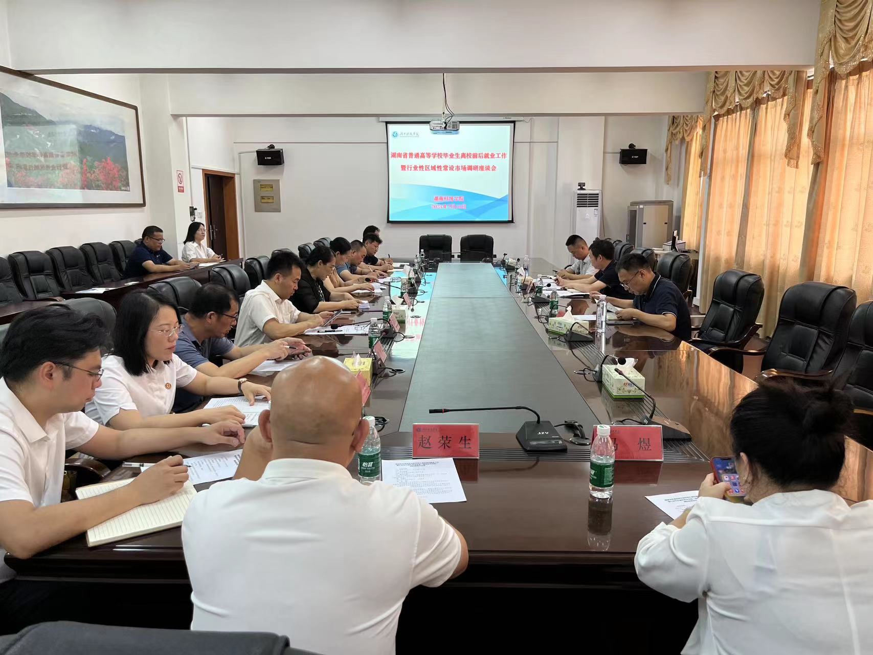 本网讯 7月10日上午,湖南省大中专学校学生信息咨询与就业指导中心副主任、二级调研员,全省高校区域性行业性常设市场第三调研组组长李昌维来校开展毕业生就业区域性行业性常设市场建设及毕业生离校前后就业工作情况调研,副校长郑银芳、永州职业技术学院副校长裴有为、湖南九嶷职业技术学院就业部门负责人及我校就业工作相关人员参加调研座谈会。郑银芳主持座谈会。