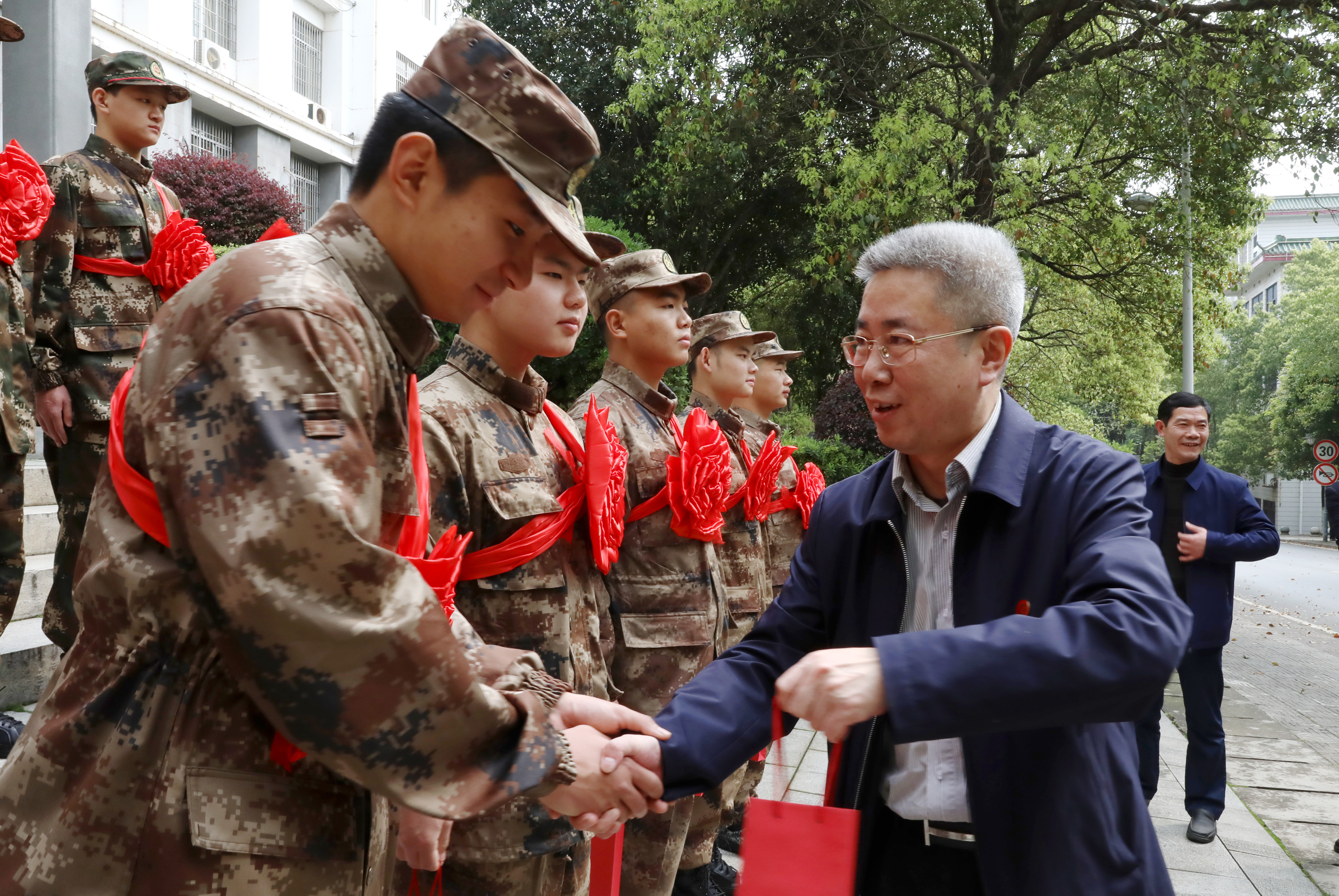 本网讯 “把青春梦想融入强军梦。”“到祖国最需要的地方建功立业。”“在军队这个大舞台上施展才华,在军营这个大熔炉里淬炼成钢。”3月15日上午,党委书记曾宝成,党委委员、副校长吴小林为学校17名入伍新兵送上美好祝福,希望他们能够坚定理想信念、艰苦奋斗,在部队不断挑战自我、超越自我,以实际行动立起新时代革命军人的好样子。