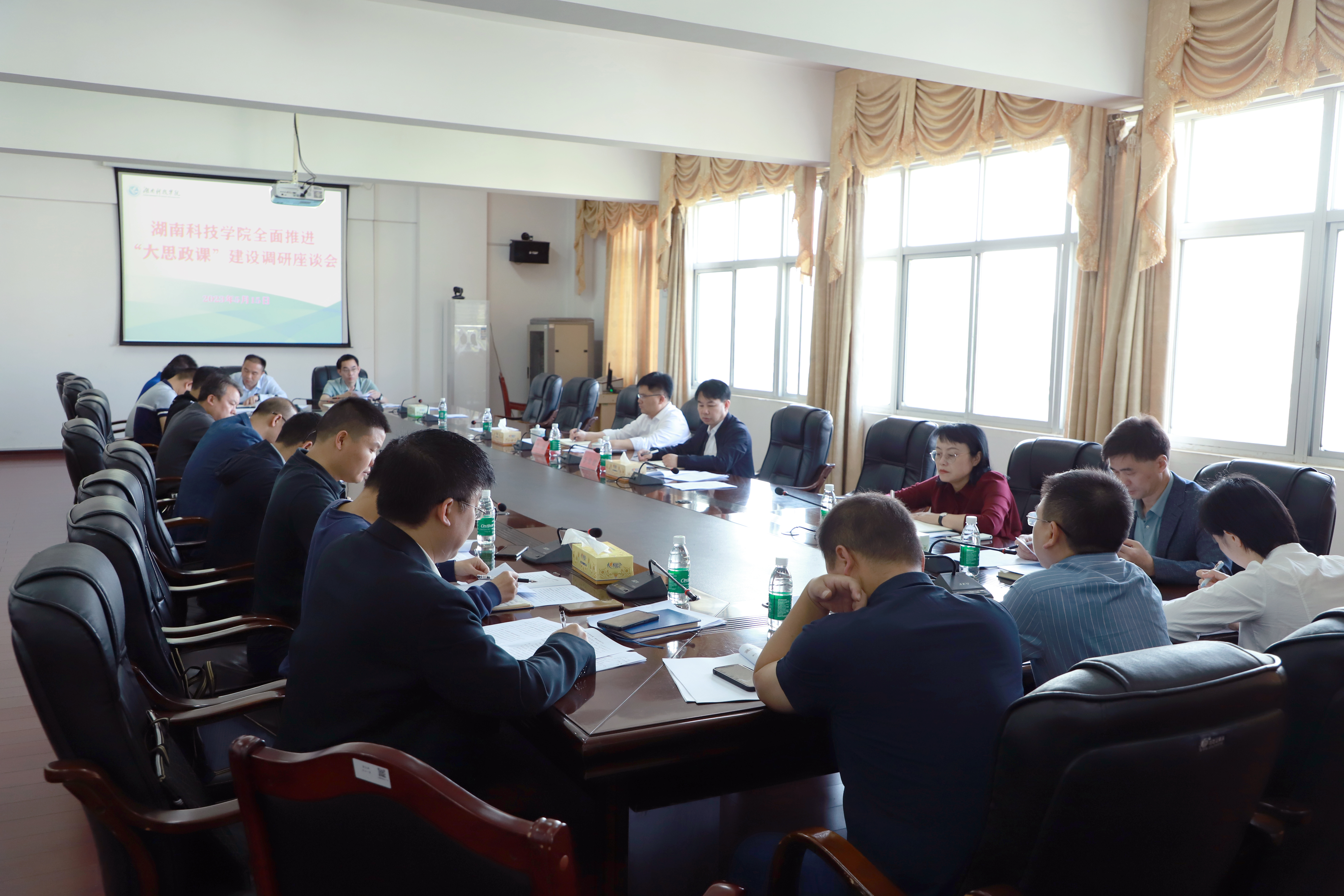 座谈会上,教务处、教学质量管理处、人事处、宣传部、学生工作部等职能部门和各教学学院负责人分别就“大思政课”建设的协同情况、课程思政建设情况、“大思政课”校外实践教学基地建设情况、学校推动永州市大中小学思政课一体化建设情况以及《九游在线全面推进“大思政课”建设实施方案》(草案)修改建议等方面进行汇报,并围绕课程建设、课程资源开发、人才队伍建设、建好用好实践教学基地等方面进行交流发言,提出意见建议。