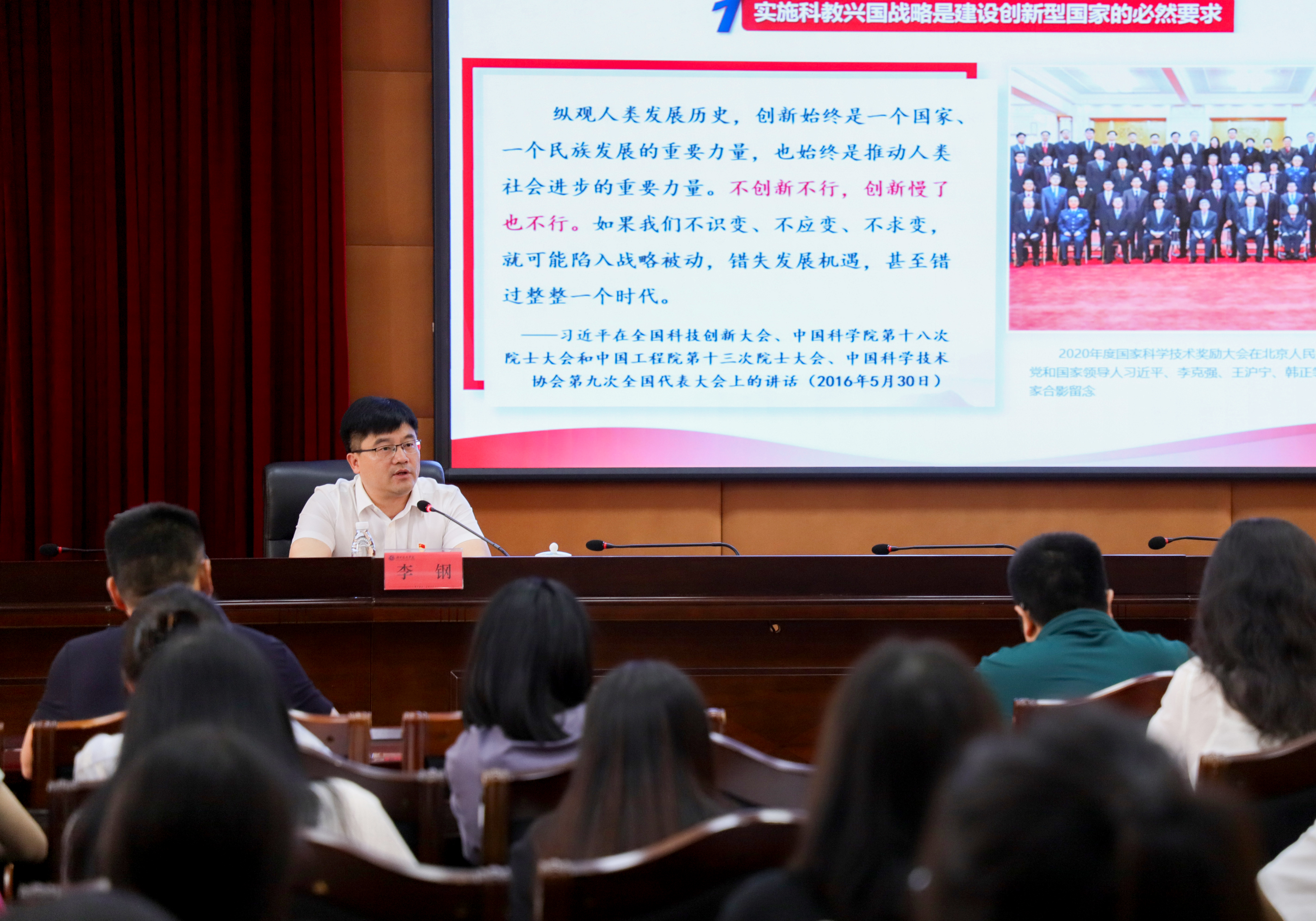 本网讯(记者 余佳佳)按照学校党委关于主题教育的工作安排,连日来,党委副书记、校长李钢以及其他党委委员以《社会主义现代化建设的教育、科技、人才战略》为主题讲专题党课。