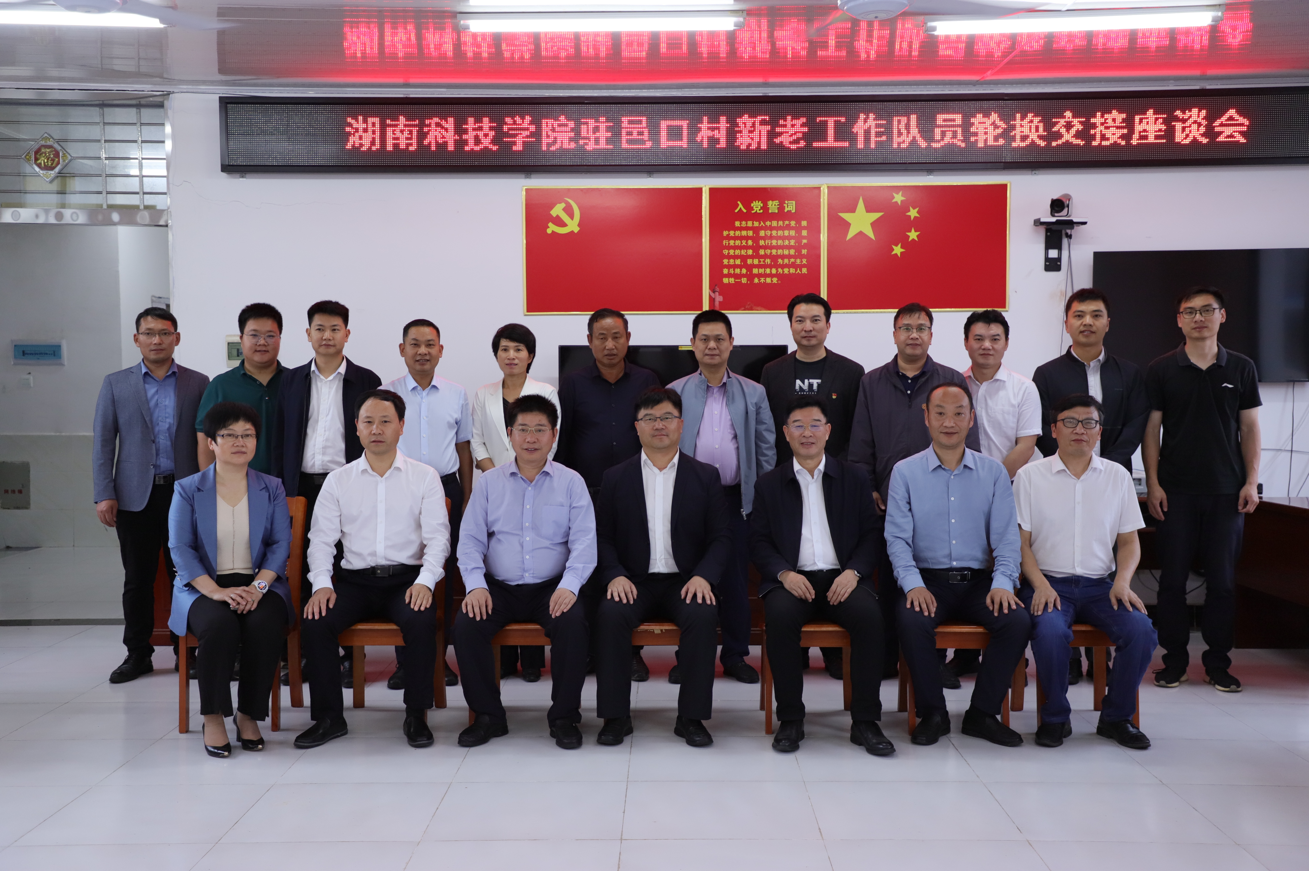 本网讯 5月22日,党委副书记、校长李钢,党委副书记宋宏福,党委委员、组织部部长杨涛将第二轮乡村振兴驻村工作队队员送至江永县桃川镇邑口村,并召开邑口村乡村振兴新老驻村队员交接会议。江永县委书记唐德荣, 县委常委、副县长杨敏, 县委常委、组织部长唐琼艳出席会议。