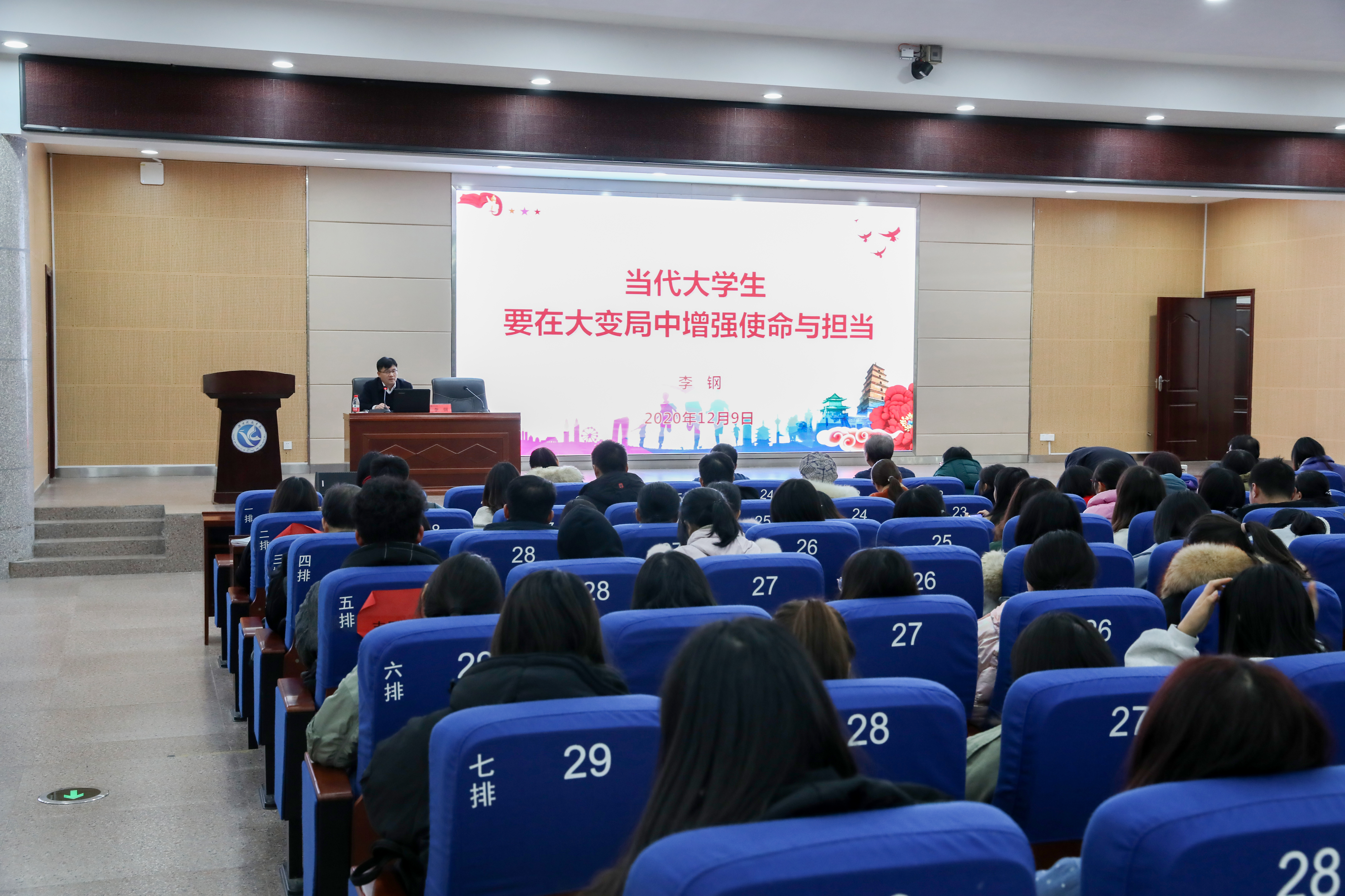 本网讯 “‘百年未有之大变局’对中国意味着什么?作为当代大学生,在百年大变局中如何作为?”12月9日晚,党委副书记、校长李钢以“当代大学生要在大变局中增强使命与担当”为题,为师生们讲授了一堂生动的形势与政策课。形势与政策课由学工部部长唐华山主持。