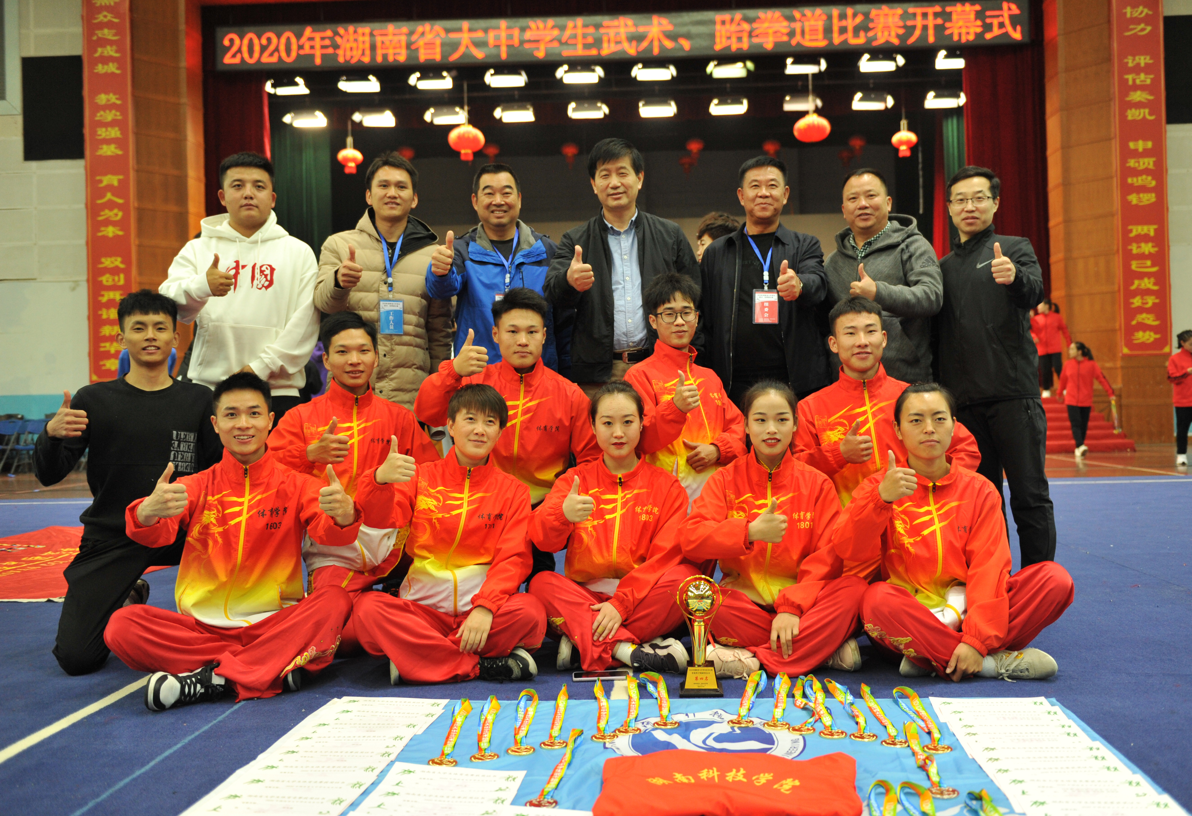 本网讯(记者 邓洁 实习记者 黄宇莹 宁央贝)11月25日,2020年湖南省中大学生武术、跆拳道比赛落下帷幕。经过7天紧张激烈的角逐,我校代表队获12金4银11铜。
