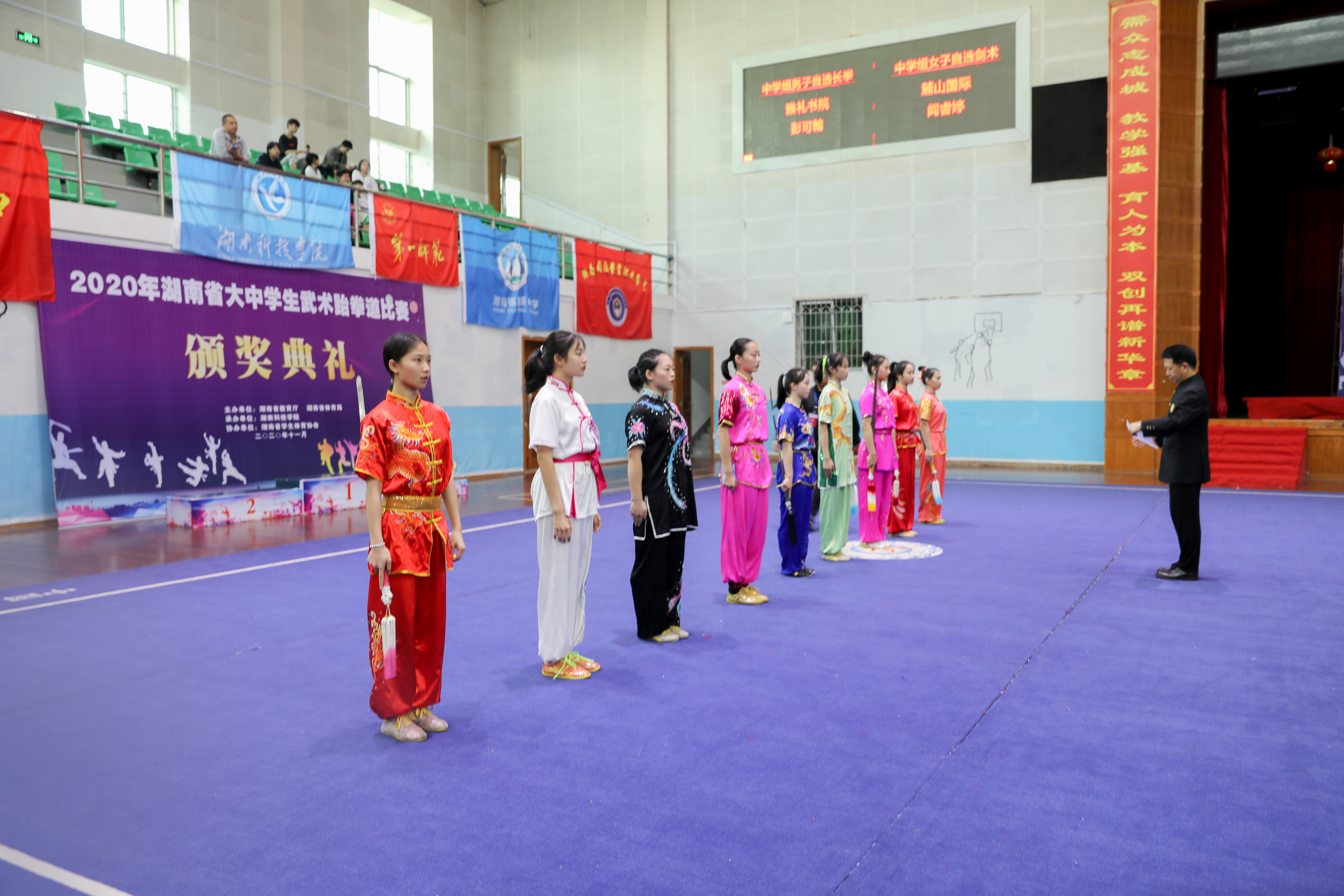 本网讯 11月19日上午,2020年湖南省大中学生武术、跆拳道比赛在我校拉开帷幕,来自全省各地市的94支大中学校代表队的参赛选手将展开激烈角逐。
