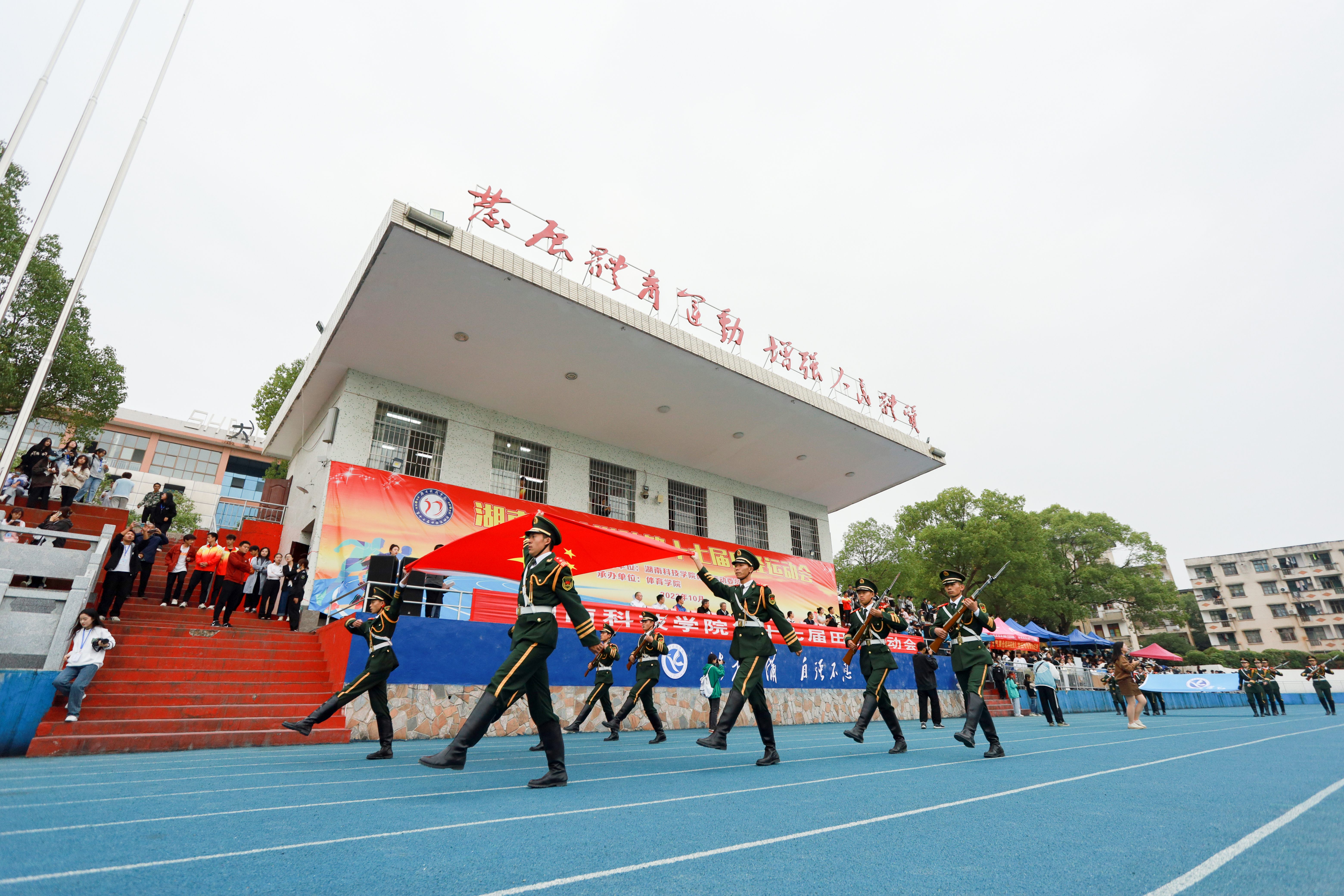 伴随着激昂的运动员进行曲,护旗手们迈着有力的步伐,护送国旗、校旗和会旗经过主席台,乐队、彩旗队、鲜花队、彩球队、学院代表队、教师代表队的方阵紧随而来,运动健儿手持院旗,脚步有力,展现出各教学学院独有的风采。他们以青春的朝气、饱满的热情、坚定的步伐,显示出科院学子高昂奋进的精神风貌。