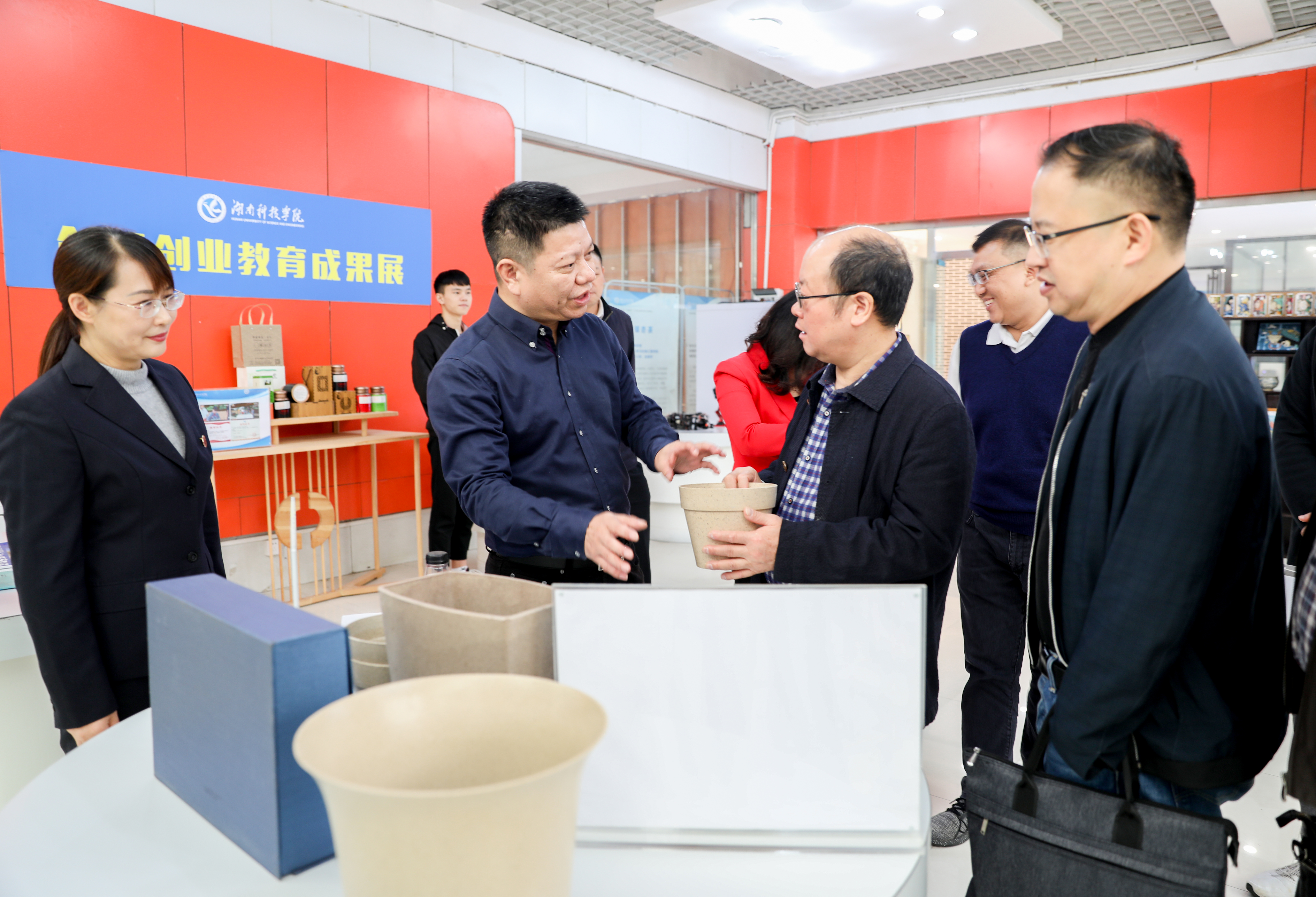 李钢作学校双创基地建设工作汇报,从组织保障、经费支持、制度建设、场地建设、功能作用、建设成效六个方面介绍了学校基地建设完善情况。他表示,学校将深入学习贯彻习近平总书记考察湖南重要讲话精神,坚持创新第一动力,全面深化创新创业教育改革,扎实推进一流创新创业教育,不断提升人才培养质量,努力构建富有时代特征和地方院校特点的创新创业教育体系,不断开创我校创新创业教育和实践新局面。