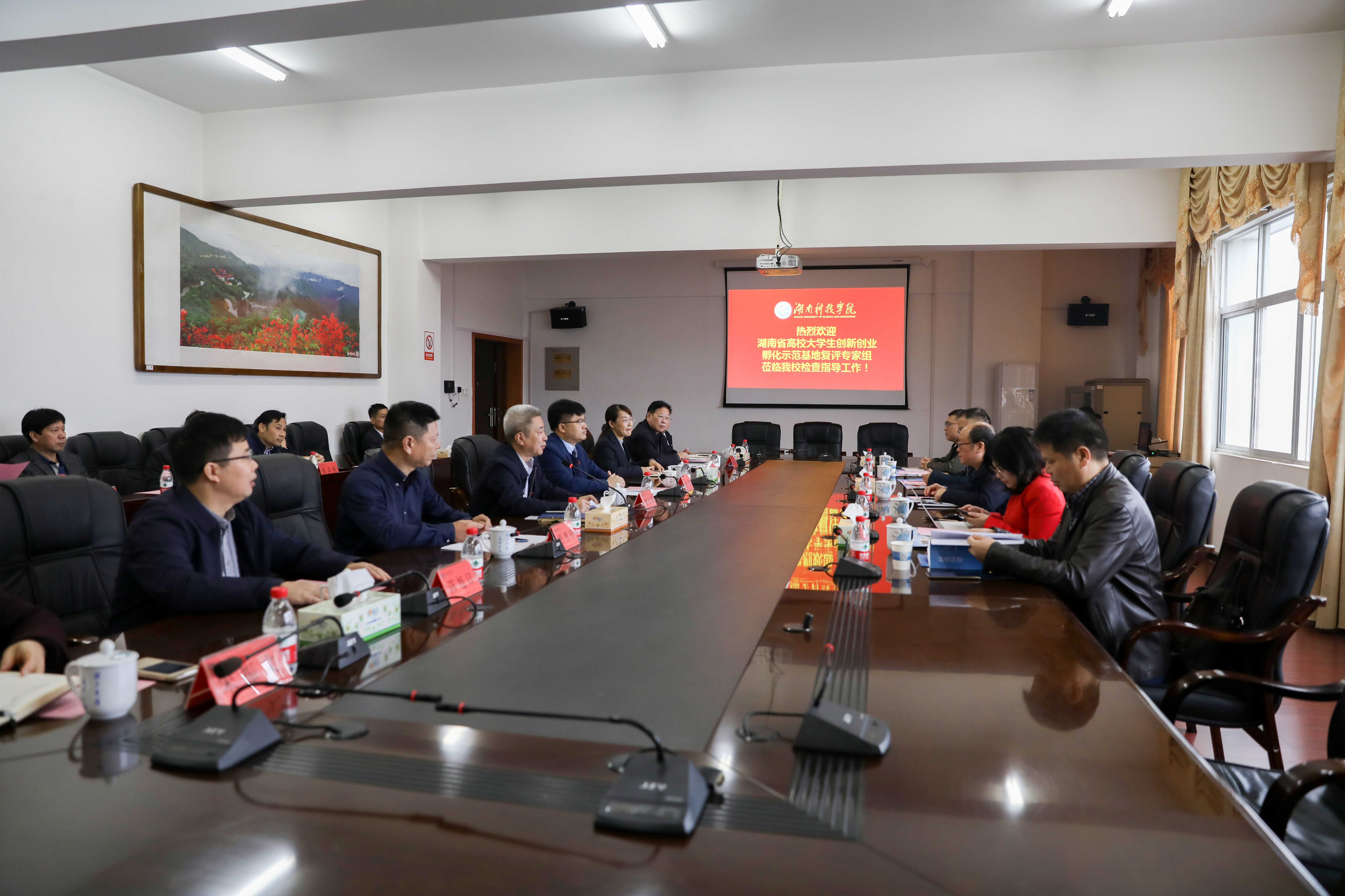 本网讯 10月20日,按照省教育厅布署,以湖南信息职业技术学院院长陈剑旄为组长,湖南商务职院副院长禹明华、湖南工业职院招生就业处处长孟正文、湖南化工职院招生就业处处长汪发亮、湖南省就业指导中心事业发展部部长王彬组成的评审专家组一行五人来校,通过听取汇报、实地考察、召开座谈会、查阅资料、专家合议、反馈意见六个环节,对我校大学生创新创业孵化示范基地进行考察复评。校党委书记曾宝成、校长李钢、副校长程智开出席会议。