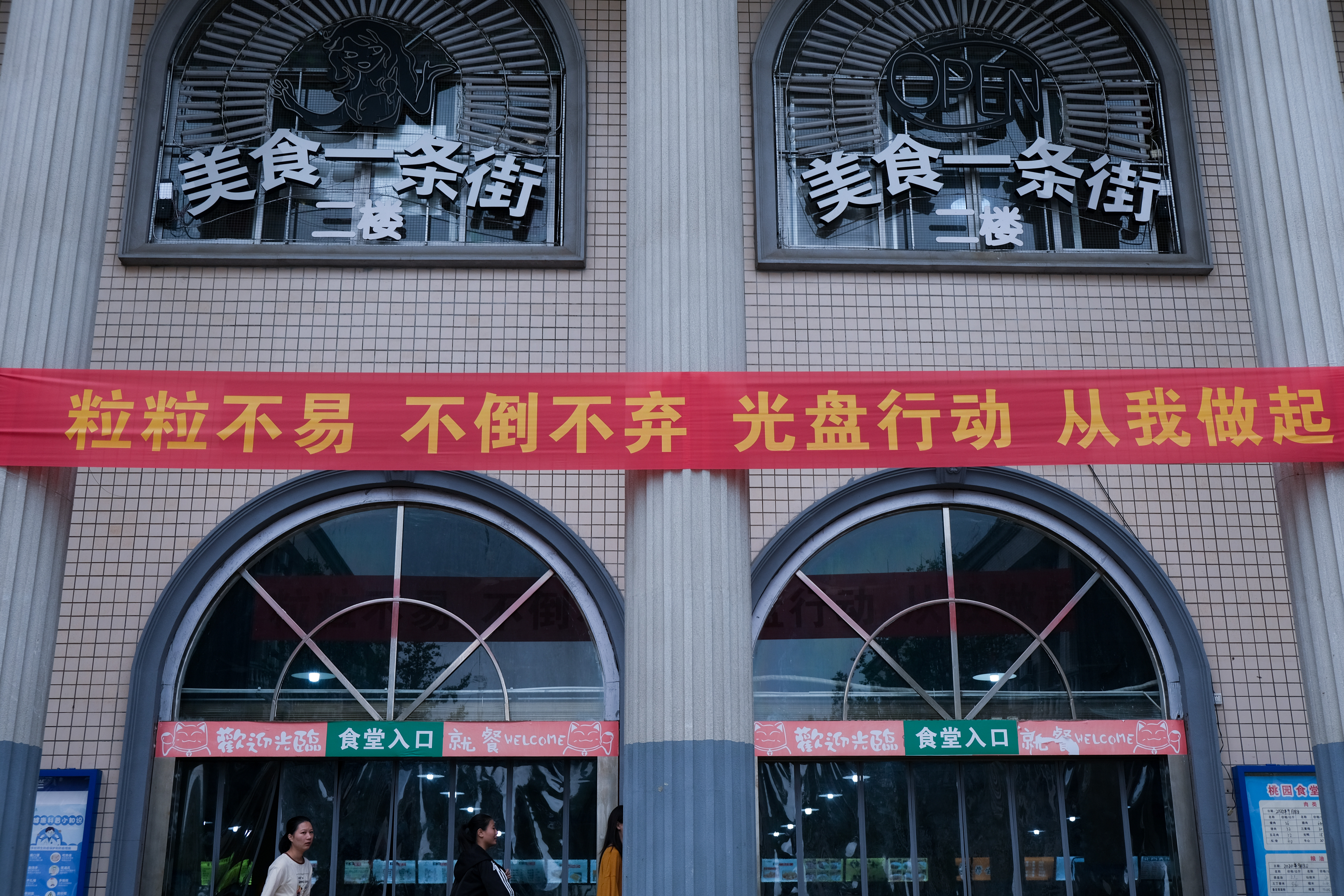 在校园的各个食堂里,“粒粒不易,不倒不弃”“光盘行动,从我做起”“杜绝浪费,爱惜粮食”等主题宣传满眼皆是。就餐过程中,还有由学生组成的民委会和监督检查员在食堂里引导同学们按需取餐、适量消费,劝阻餐饮浪费行为。