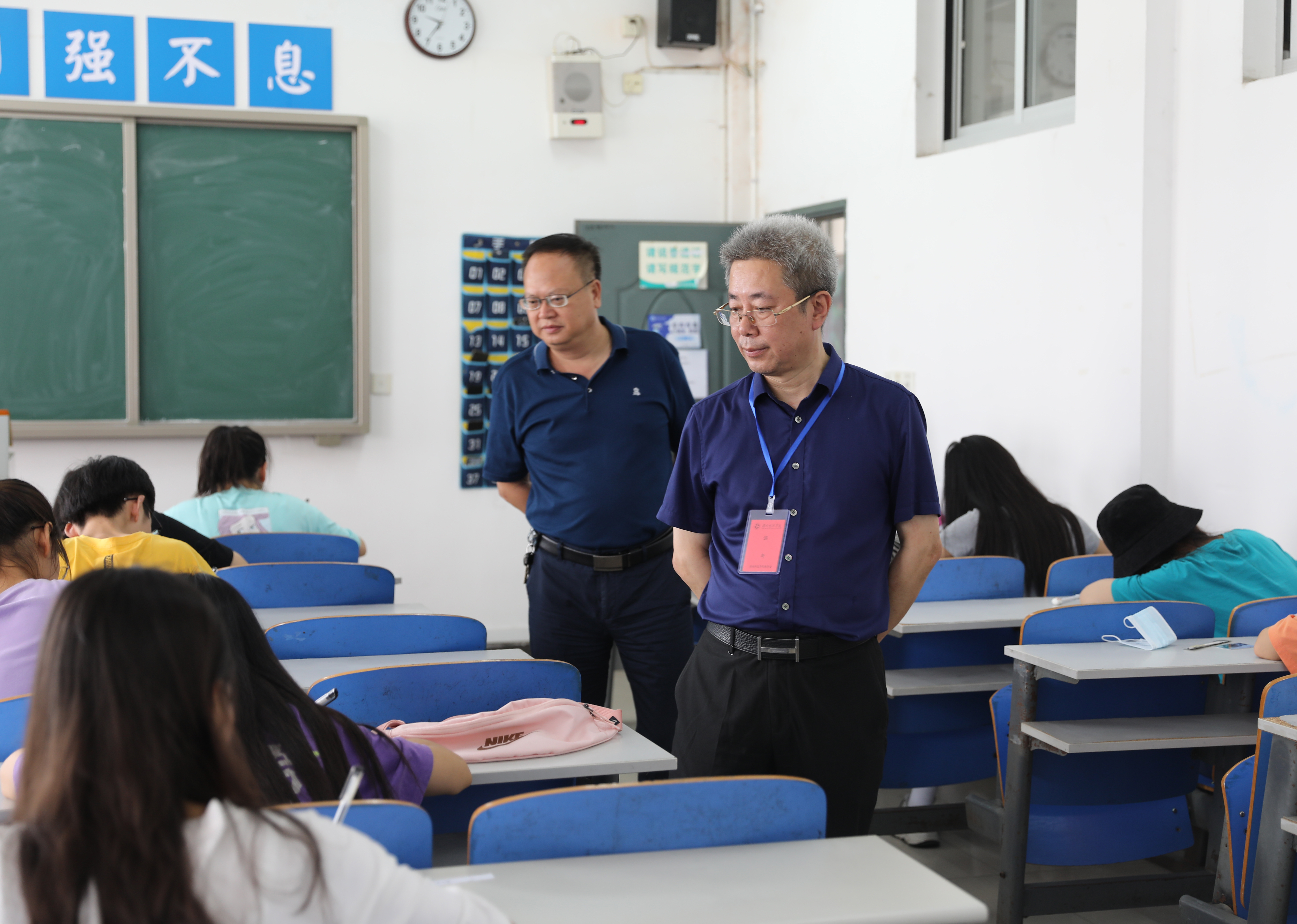 本网讯 9月7日至8日,党委书记曾宝成、校长李钢分别带队深入各个考场,对考场秩序、考风考纪、监考人员履职、院系巡考情况等进行巡视检查。