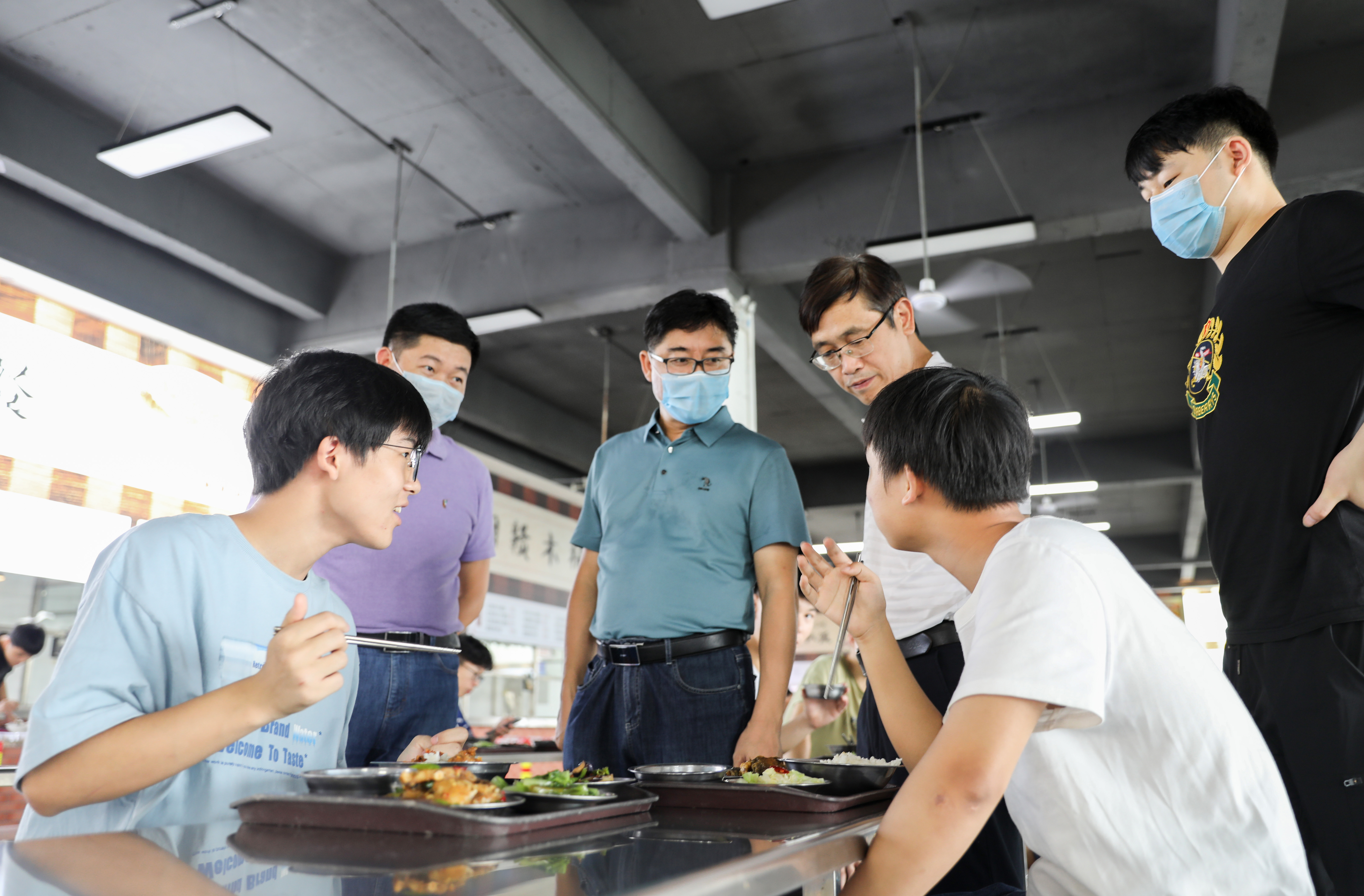 “饭菜价格还实惠吗?”“饭菜合不合胃口?”彭立威详细地询问学生对食堂饭菜质量、价格、口味等方面的满意程度,了解食堂各类食材的采购流程、货物存储等各个环节,并表示要严把卫生关、质量关,确保同学能吃得安全、吃得健康。