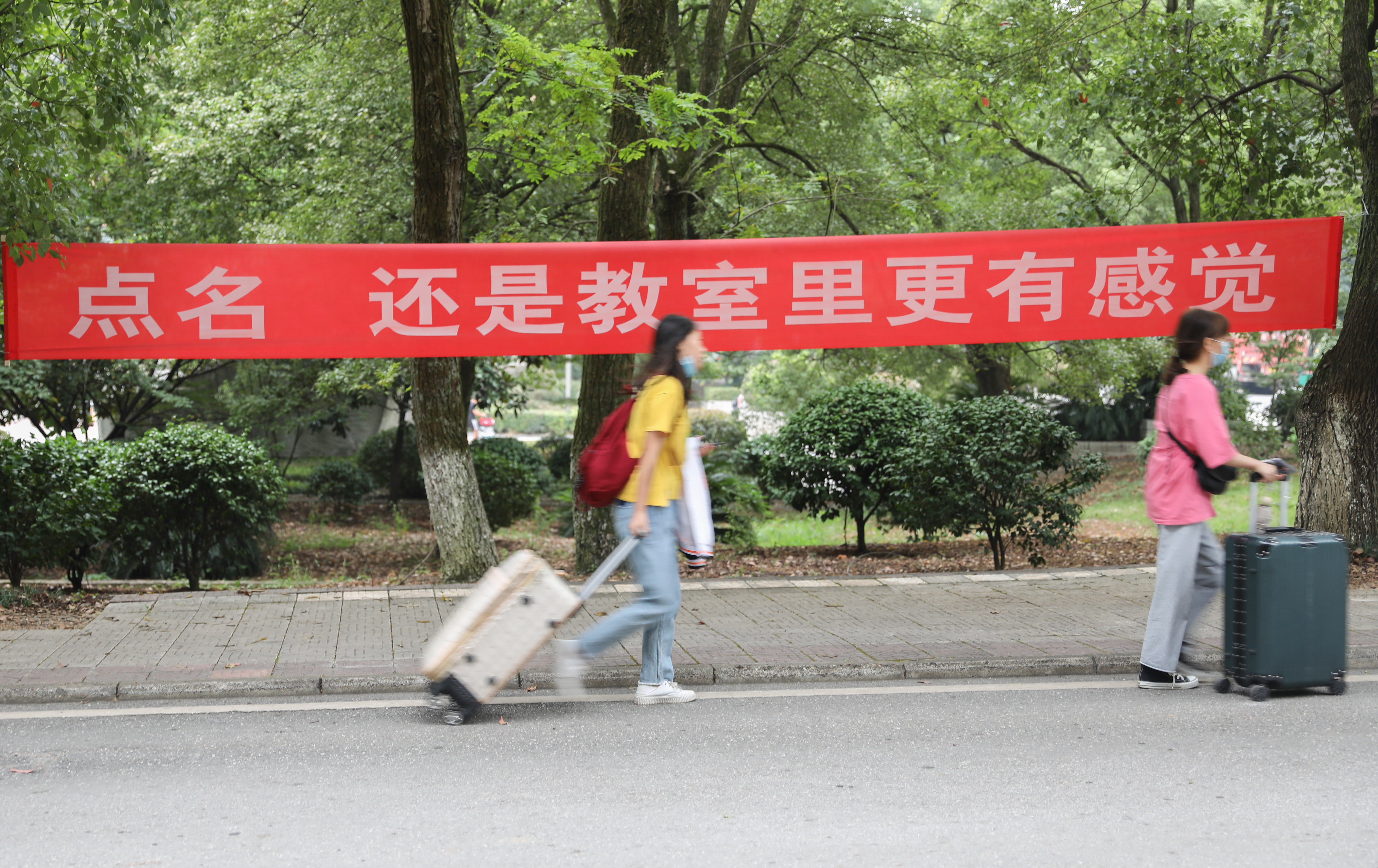 “所念皆星河,星河皆是你!”“偶尔想你,经常偶尔。”在学校主干道两侧横挂着精心准备的暖心横幅,每条横幅都承载着学校对科院学子们阔别已久的思念。传媒学院陈慧忠同学很是激动,他说,“终于回到了学校,一切都是熟悉亲切的模样。”