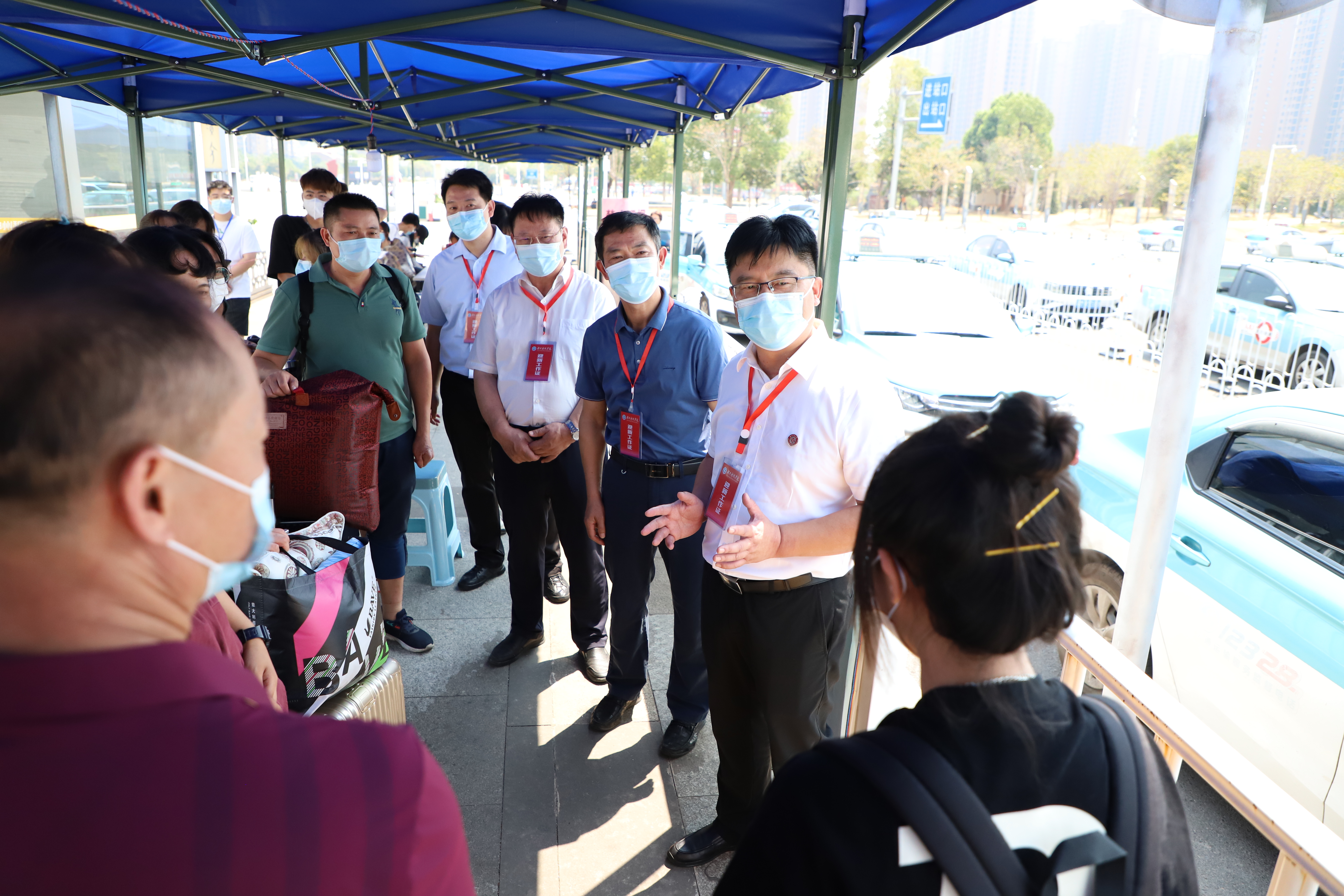 教学学院迎新接站点,是新生来校的第一站。校领导一行来到各学院的迎新接待点,亲切看望慰问参与迎新工作的师生们,详细询问新生报到情况,查看迎新工作最新进展。校领导对奋战在迎新第一线的师生员工的辛勤付出给予充分肯定,对学院和部门开展的迎新工作给予高度赞扬。