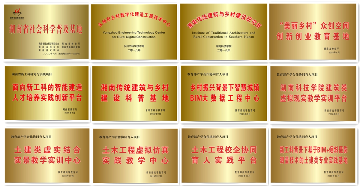 学院现有各类仪器设备价值一千余万元,包括探地雷达测试系统、飞马无人机、大疆无人机、法如三维激光扫描仪、GPS接收机、微机屏显式液压万能试验机等设备。拥有湖南省古建筑文化遗产保护传承社会科学普及基地、湖南省优秀校外实习基地、湖南省校企合作“美丽乡村”众创空间创新创业教育基地等多个省级实践教学基地,拥有BIM技术研发中心、九游在线湘南传统建筑与乡村建设研究所、永州市“乡村数字化建造工程技术中心”、永州市“湘南传统建筑科普基地”以及教育部协同育人“乡村振兴背景下智慧城镇BIM大数据工程中心”等实践中心。学院注重与社会多方合作办学、协同育人,与中铁、中交以及湖南建工集团等企业签署了校企合作协议;先后与广州、深圳、长沙、杭州多家知名企业建立校外实习基地、创客中心等人才培养基地。