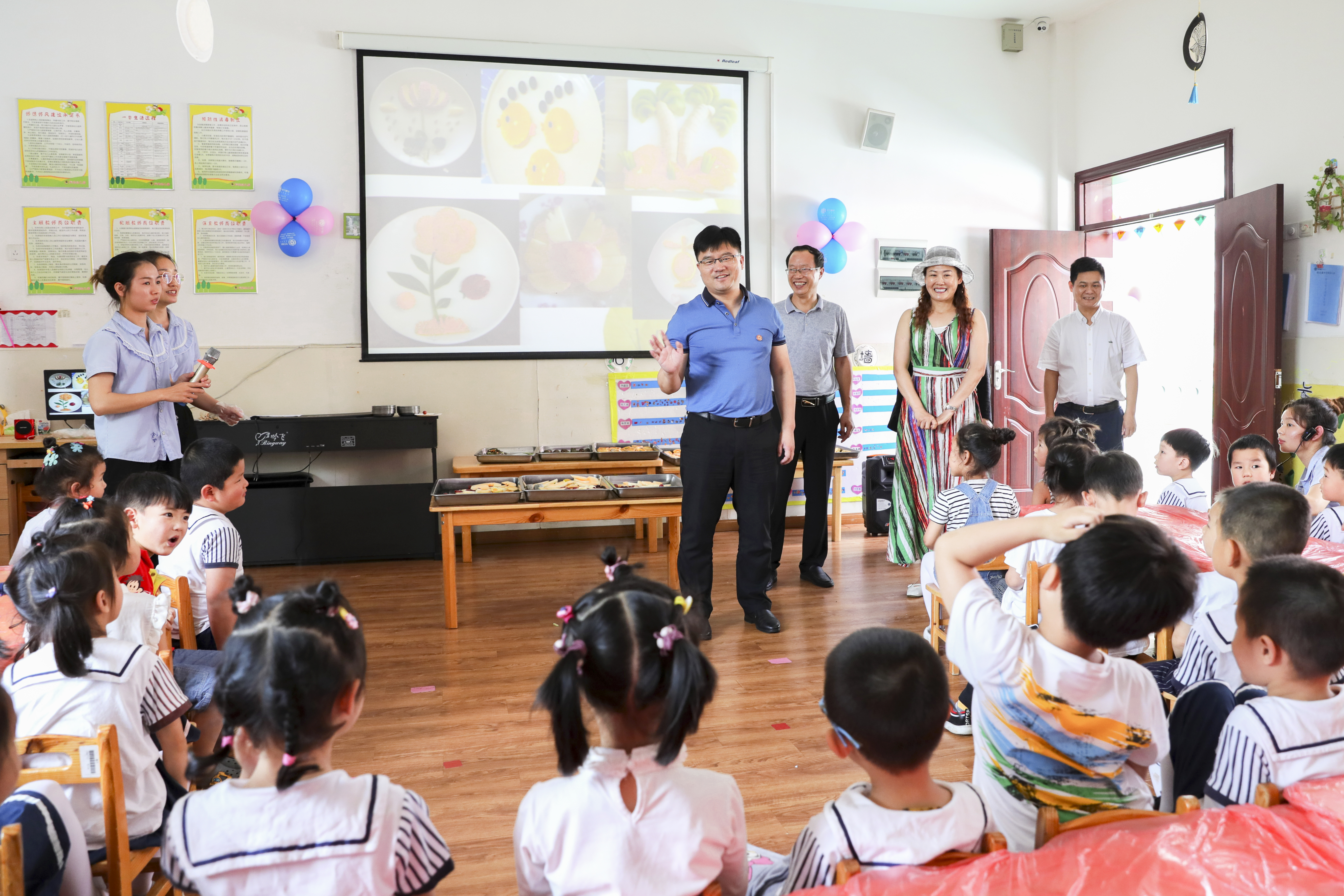 李钢边走边看、边听边问,详细了解幼儿园的教学和管理情况,仔细询问了孩子们的学习生活情况。在中一班教室,孩子们正在欢唱儿歌,欢声笑语不断。李钢走到孩子们中间,微笑着和小朋友们打招呼,俯下身来与他们亲切交流互动,并为小朋友们送上节日礼物。他叮嘱相关负责人要始终把安全摆在首位,抓实孩子们成长期的身心关怀,助力小朋友们幸福快乐地健康成长。