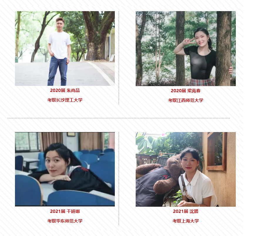 自2006年开办思想政治教育本科专业以来,一批应届毕业生先后考取了湖南大学、华中师范大学、广西师范大学、华东师范大学、上海大学、西南大学、湘潭大学等省内外知名高校硕士研究生,考研录取率居全校前列。