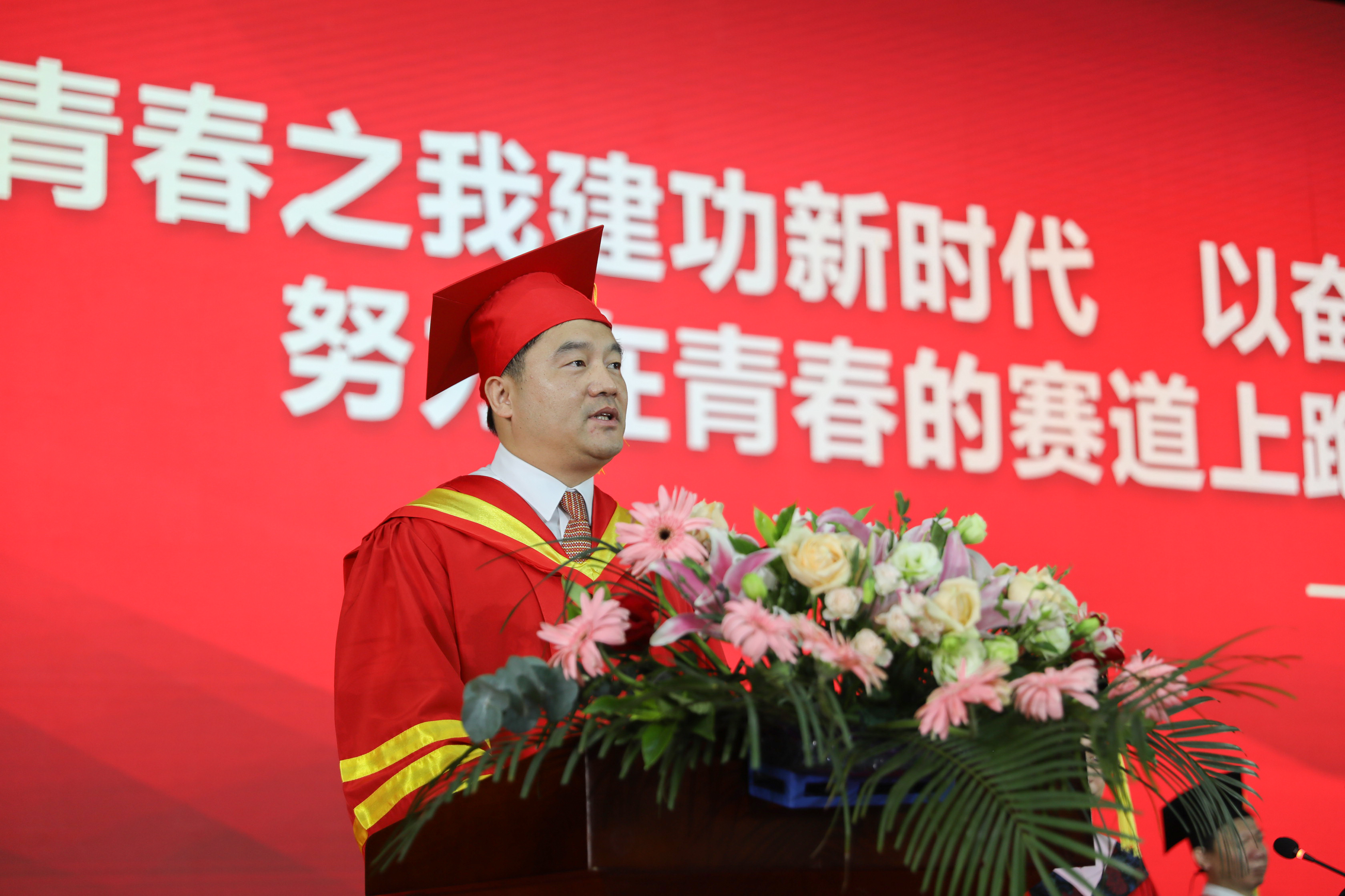 “无论人生是否如意,都欢迎大家常回母校看看,我们随时都愿意倾听你们的故事,分担你们的忧愁,分享你们的喜悦。”校长李钢作毕业致辞,他代表学校向全体毕业生表示最热烈的祝贺,并对即将开启人生新征程的毕业生提出了四点希望:一是心有所信,用理想信念指引人生航向。时代各有不同,青春一脉相承。要坚定理想信念、厚植家国情怀,在与新时代的同向同行中筑牢信仰之基、补足精神之钙、把稳思想之舵,让爱国主义的伟大旗帜始终在心中高高飘扬。二是心怀梦想,用拼搏奋斗勇担时代重任。青年的命运,从来都和时代紧密相连。要积极转变就业观念,让“脚先着地”,到基层去、到祖国最需要的地方去,将个人的理想追求融入党和国家事业当中,继承中国青年“永久奋斗”的传统,在实现中国梦的生动实践中放飞青春梦想,在为人民利益的不懈奋斗中书写人生华章。三是心要坚强,用乐观心态笑对人生百态。前路漫漫,道阻且长,无论何时何地,遇到多大困难,都要努力保持积极向上、从容乐观的心态,要相信“那些打不倒你的,终将使你更强大”。四是心向阳光,用善良真诚感恩人生岁月。品德,是人的立身之本、处世之基。要眼里有光、心中有爱,坚持向美向上向善的价值追求,立正心、明大德、行大道,对自己多一份自律和坚守,对他人多一份宽容和理解,在一点一滴中弘扬真善美、传播正能量,让社会更加和谐美好。