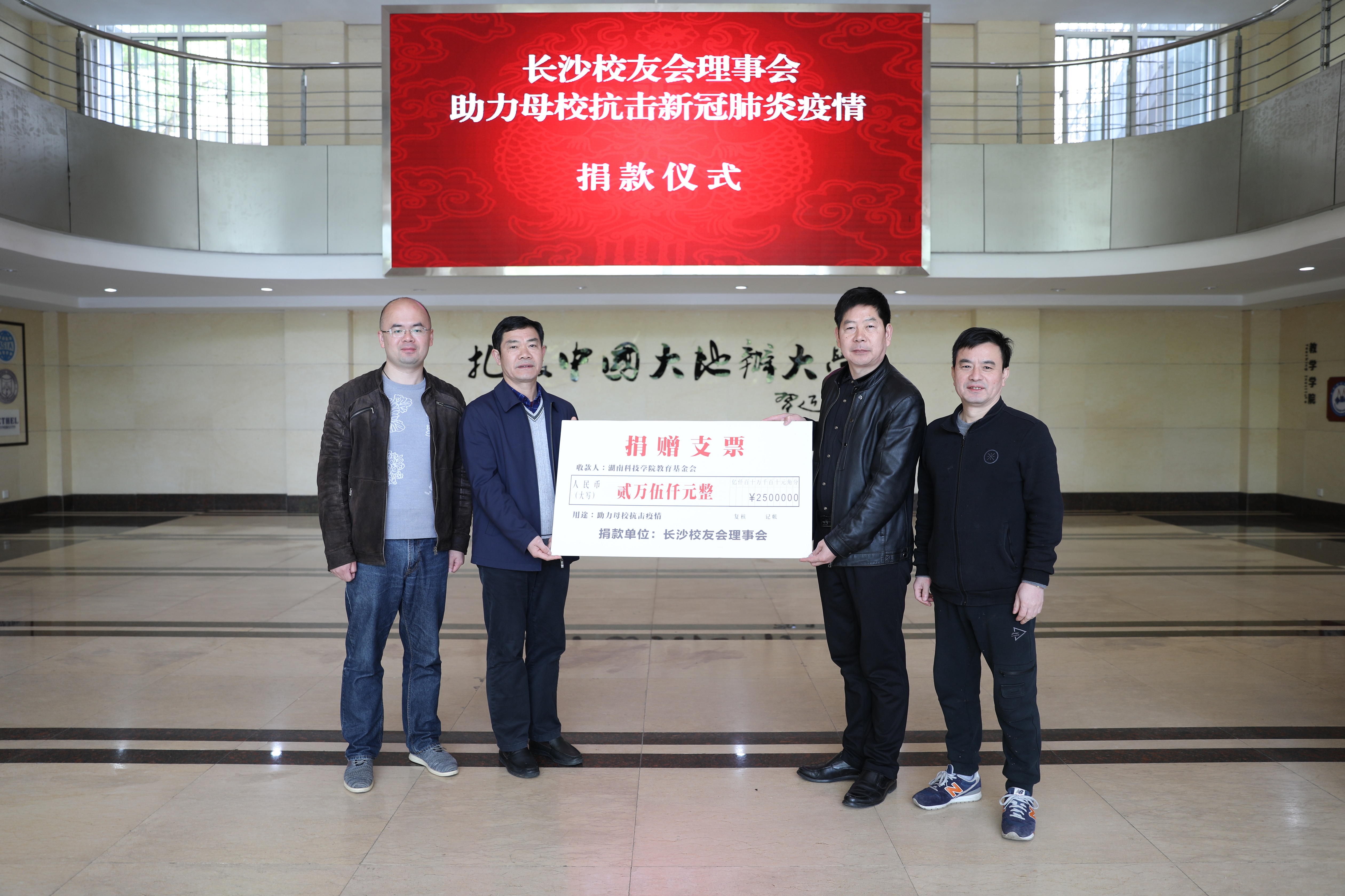 本网讯 4月14日,我校长沙校友会理事会捐款25000元,助力学校防控工作。学校党委委员、副校长吴小林出席捐赠仪式。