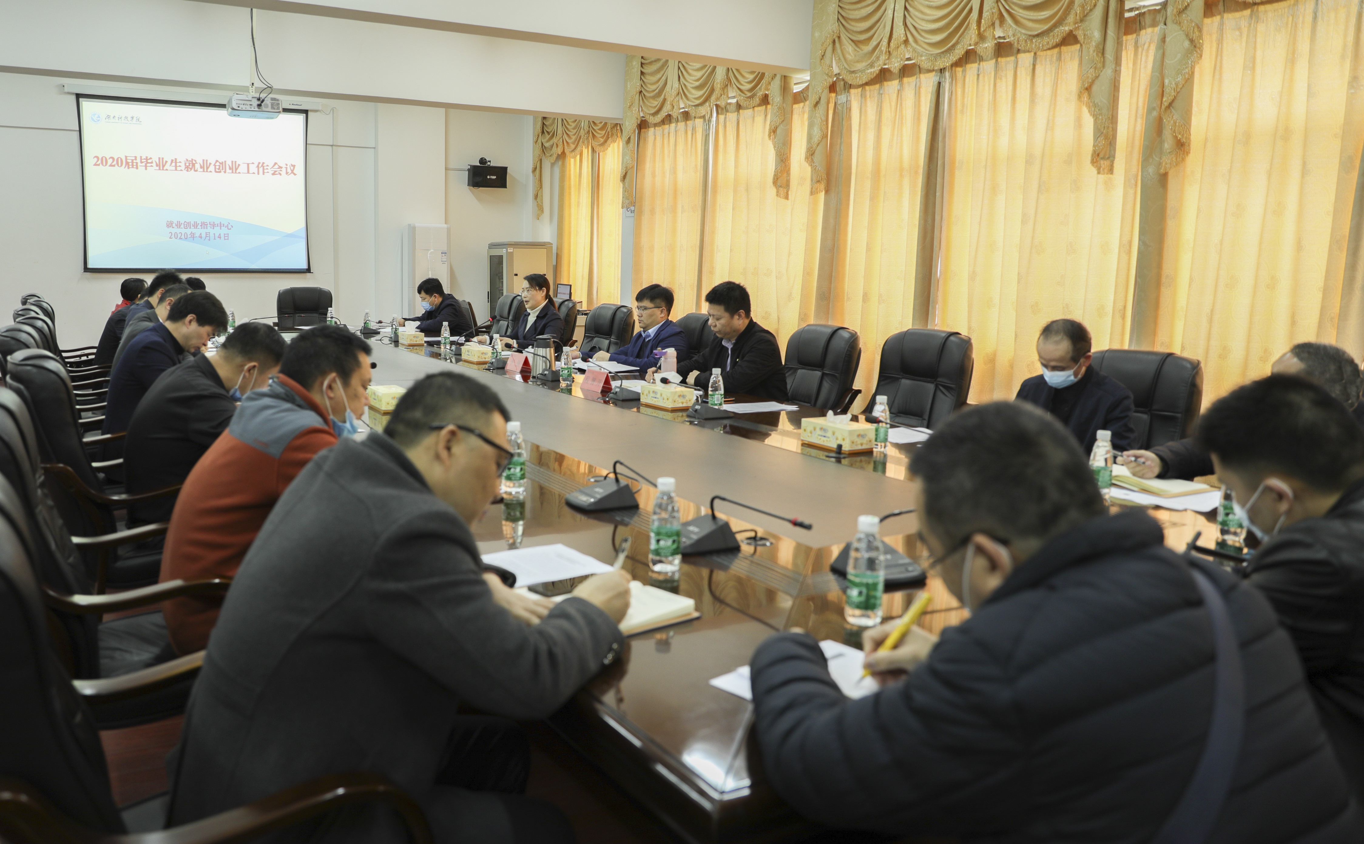 本网讯 当前正值求职择业的关键时期,为深入贯彻落实习近平总书记“要多措并举做好高校毕业生等群体就业工作,确保就业大局稳定”的重要指示精神,4月14日上午,学校举行2020届毕业生就业创业工作会议,对就业创业工作进行深入研究和全面部署。校长李钢,党委委员、副校长程智开出席会议。会议由程智开主持。
