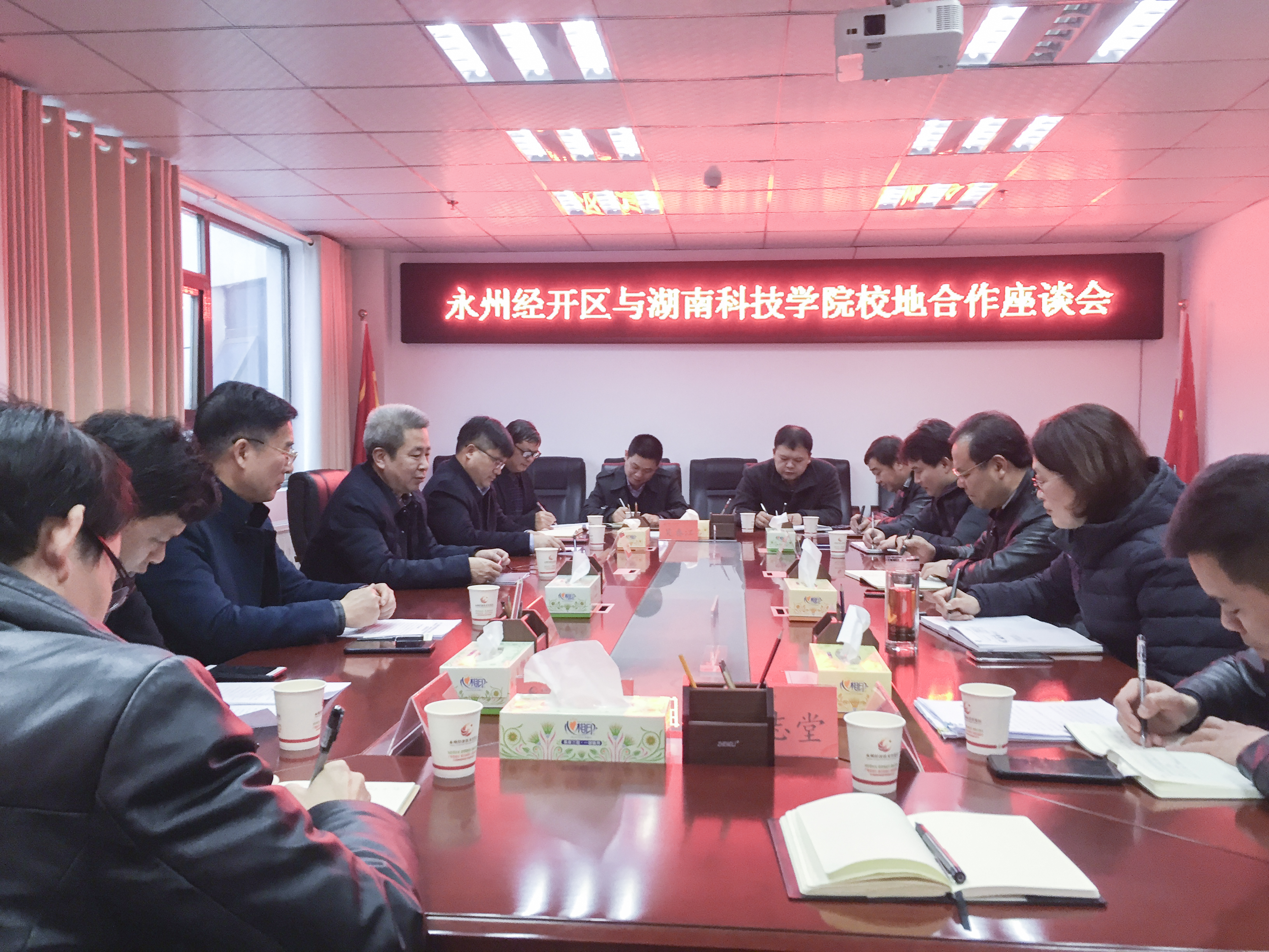 会上,我校与永州经开区达成了具体合作意向,双方就下一步工作及合作事宜进行了详细磋商。
