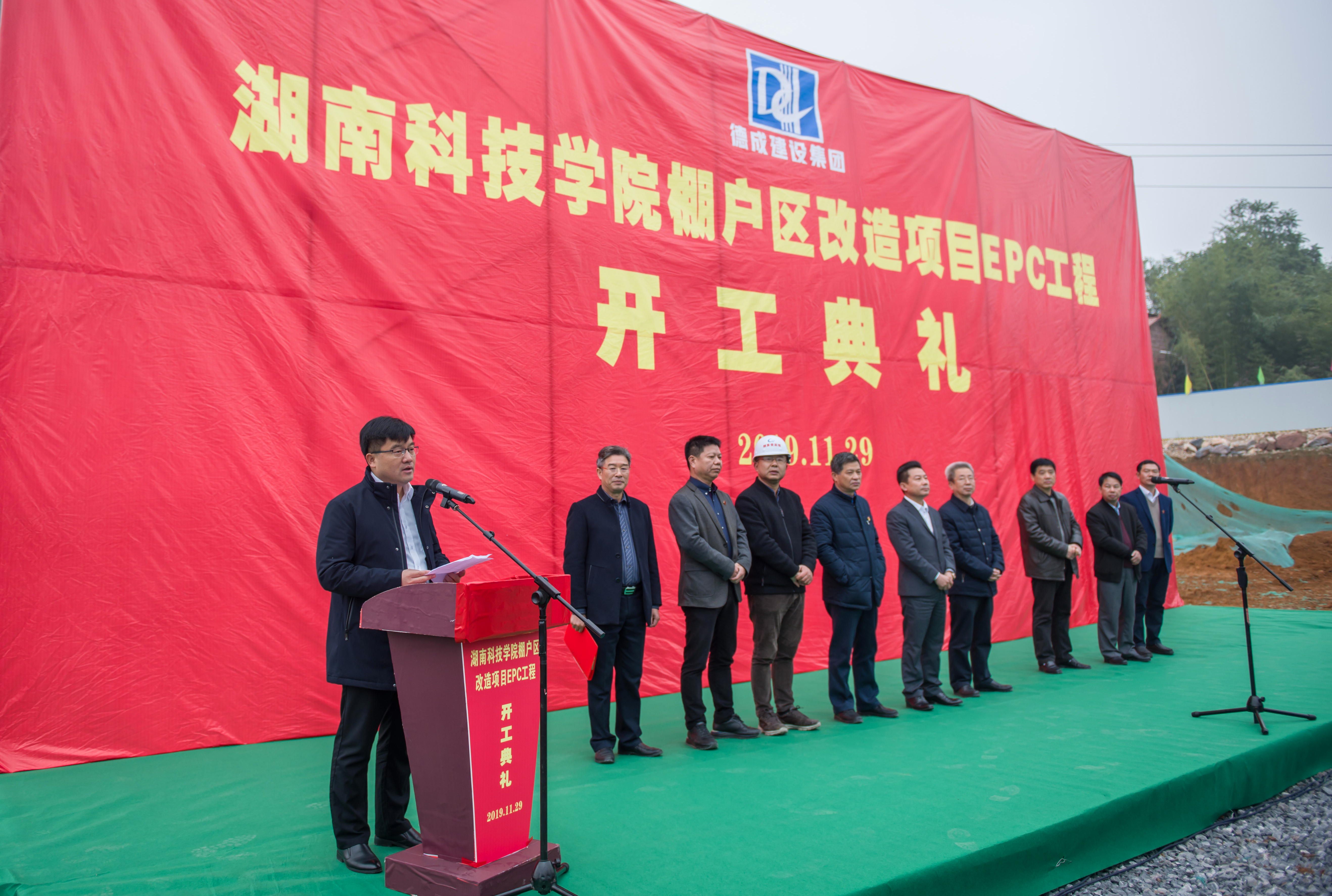本网讯 11月29日早上,我校举行棚户区改造项目开工典礼。永州市房产局副局长龙国庆、德成建设集团有限公司项目经理张延超,湖南精算堂工程项目管理有限公司总监晏罡,党委书记曾宝成,校长李钢,校领导唐艳明、李常健、吴小林、程智开,党委委员、宣传统战部部长杨涛以及党政办、招投标中心、基建处等相关职能部门负责人和教职工代表参加典礼。典礼由副校长宋宏福主持。