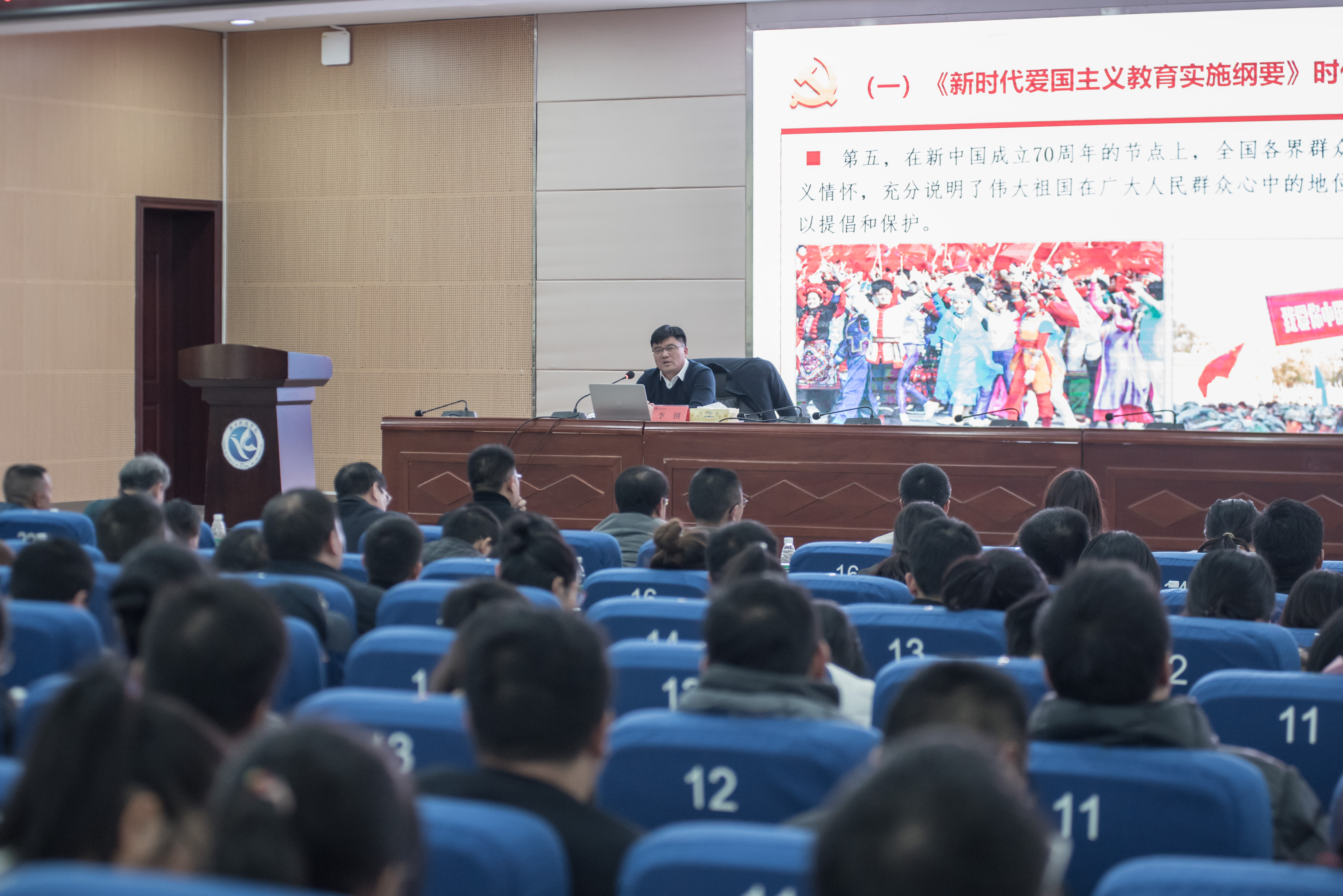 校长李钢以贯彻落实《新时代爱国主义教育实施纲要》为题作专题报告。他强调,加强新时代爱国主义教育,必须将教育与自我教育相结合、将理论教育与实践教育相结合、将显性教育和隐性教育相结合、将日常教育和重要时间节点相结合,才能达到教育效果。