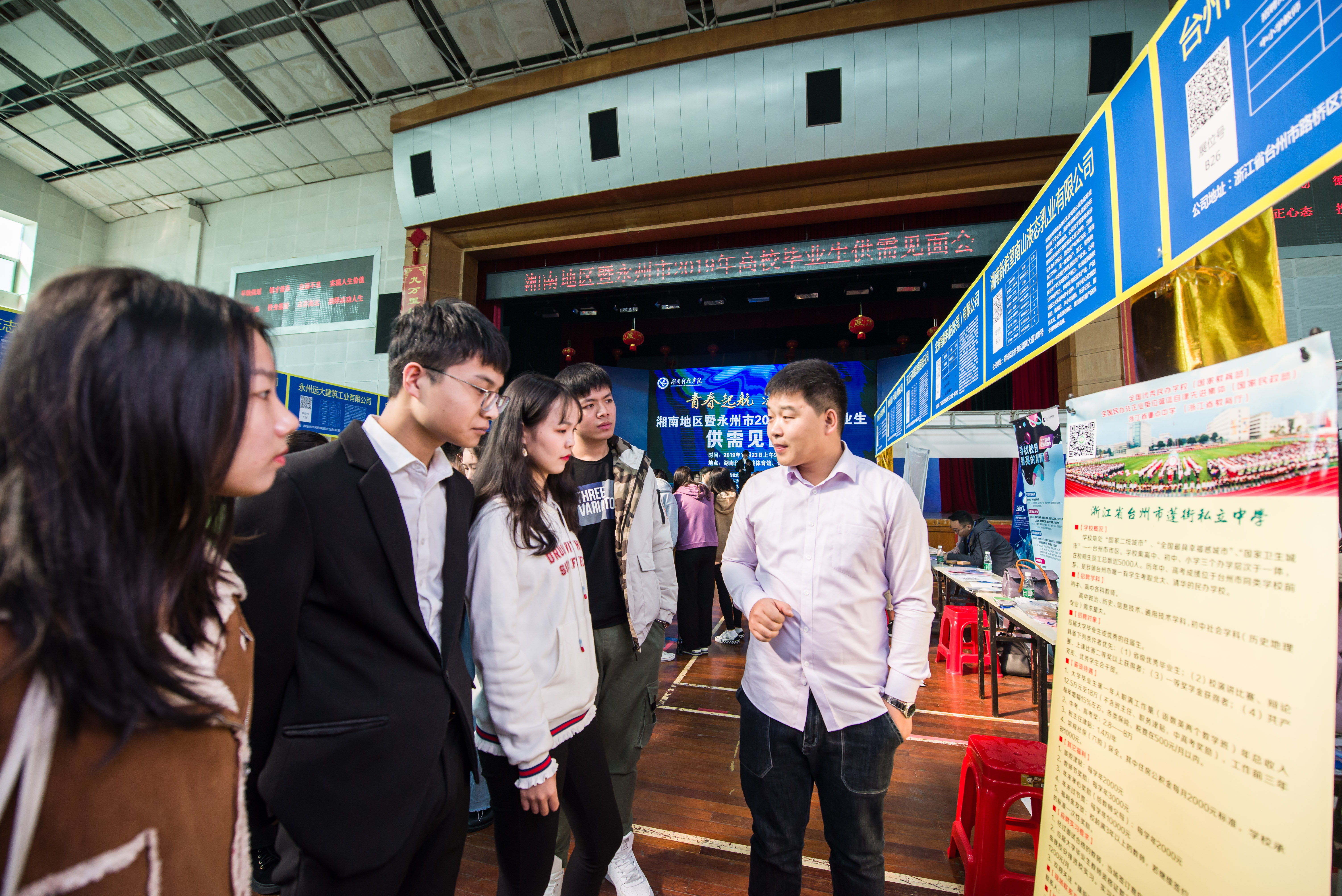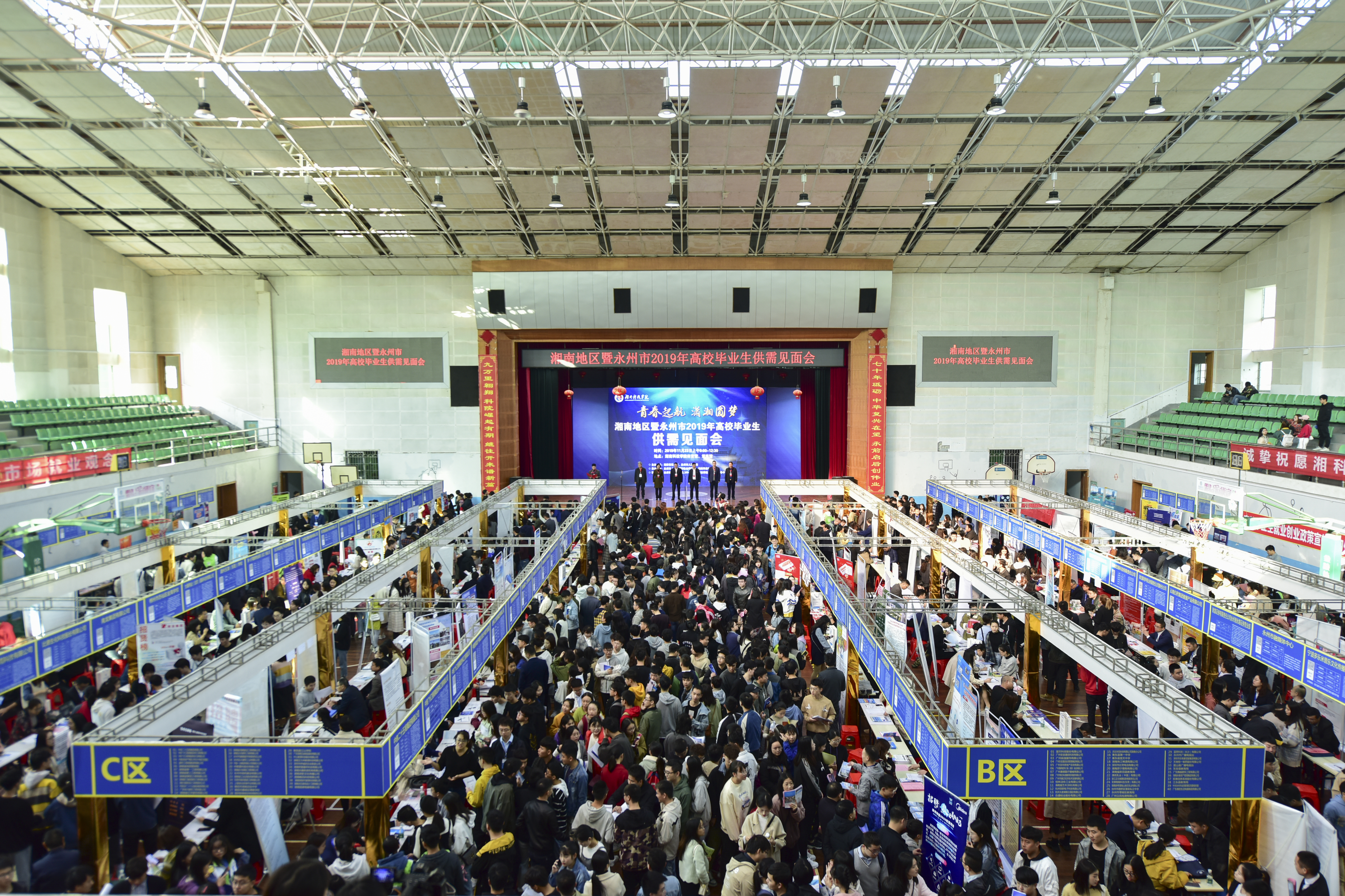 本网讯 11月23日,由湖南省教育厅、永州市人民政府主办,我校和永州市人力资源和社会保障局共同承办的“青春启航,潇湘圆梦”湘南地区暨永州市2019年高校毕业生供需见面会在校举行,吸引了来自校内外的应届毕业生8300人次进场求职。