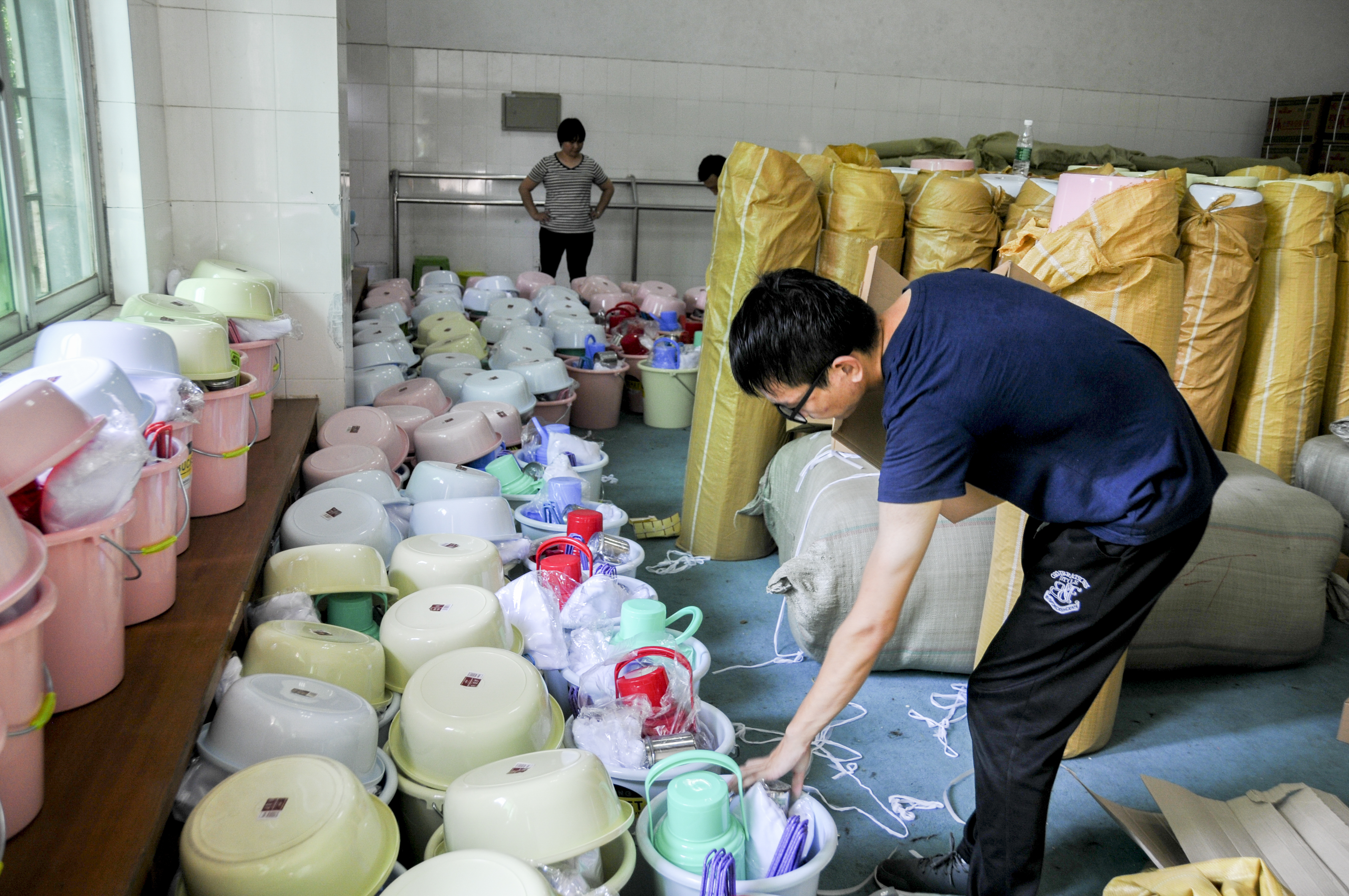 工作人员在清点物资