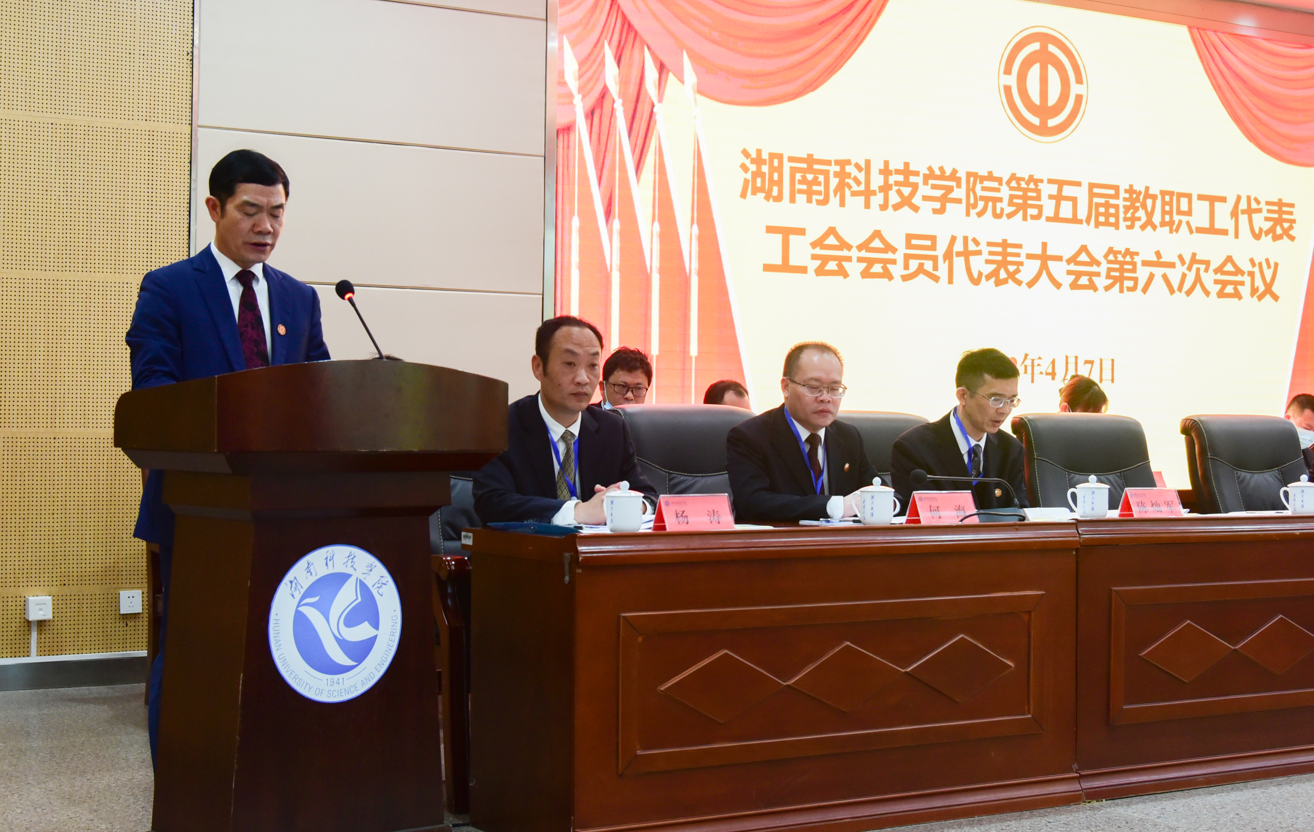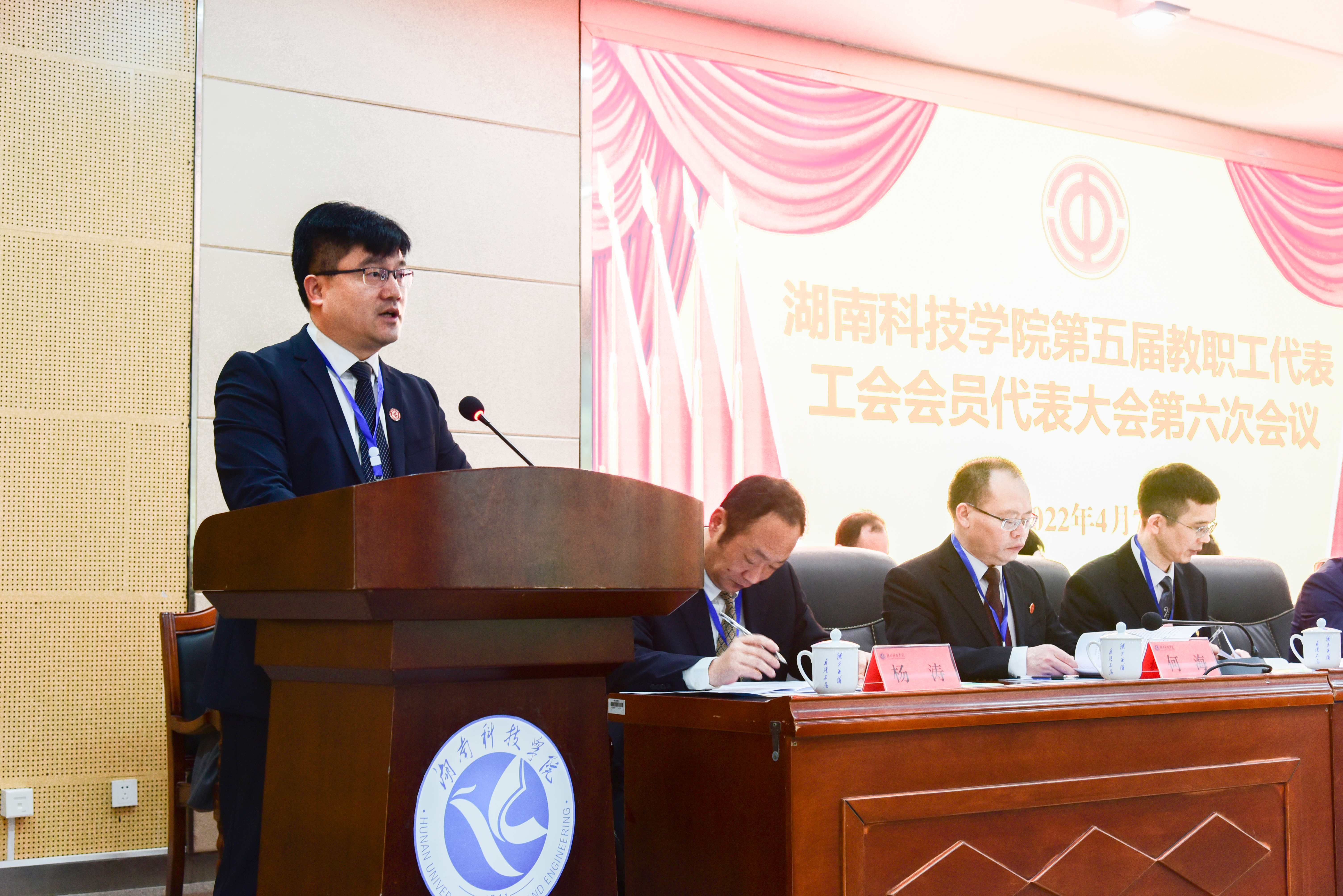 4月7日下午,为期一天的第五届教职工代表工会会员代表大会第六次会议圆满完成各项议程,在潇湘大讲堂闭幕。闭幕式由吴小林主持,曾宝成发表讲话。