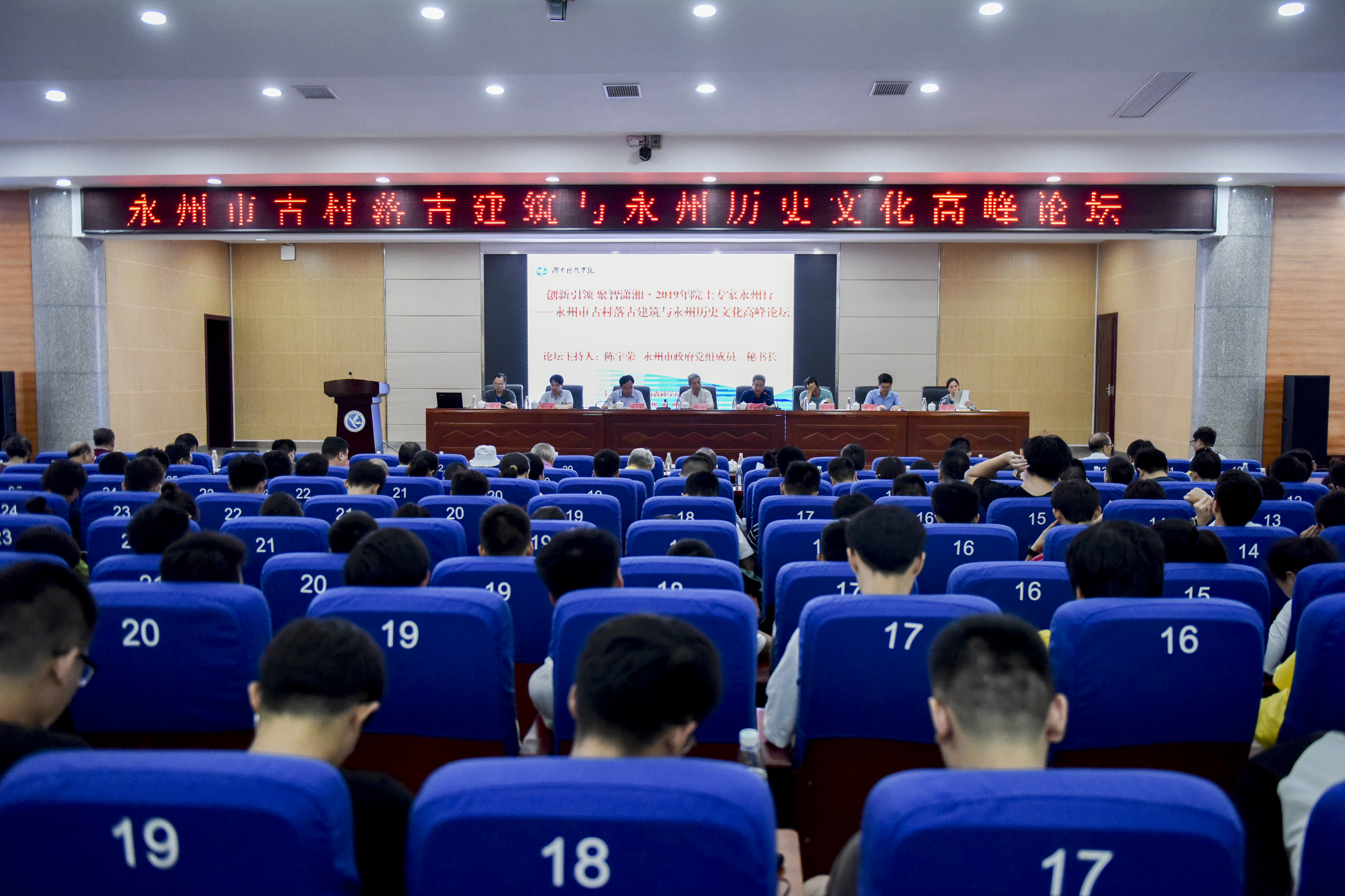 本网讯 绿树荫浓夏日长,楼台倒影入池塘。6月21日下午,“创新引领 聚智潇湘” 2019年院士专家永州行——永州市古村落古建筑与永州历史文化高峰论坛在我校举行。国家文物局古建筑专家委员会委员、湖南大学建筑学院教授柳肃,湖南省交通规划勘察设计院副总经理彭立,湖南省建筑设计院副总工程师王小保,湖南省烟草协会副理事长肖和元,永州市政府党组成员、秘书长陈宇荣,我校党委书记、校长曾宝成,副校长李常健参加。论坛由陈宇荣主持。