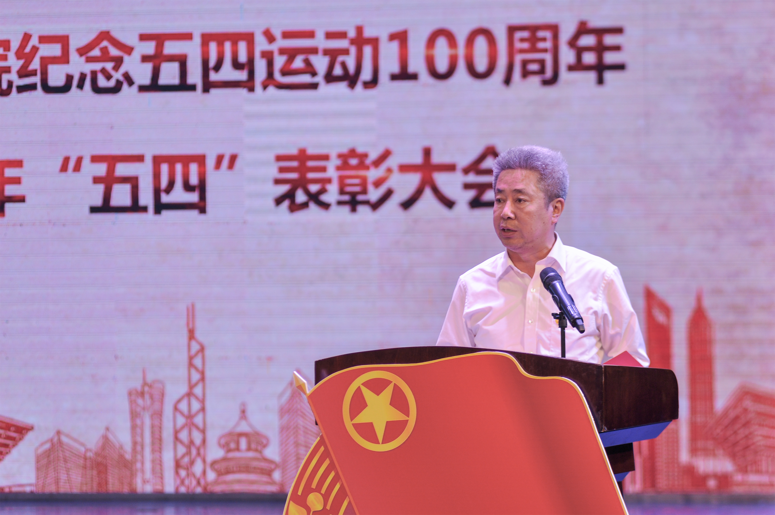 曾宝成代表学校向受表彰的先进集体和个人表示祝贺,并向全校青年朋友致以节日的问候!他对全校青年提出四点期望:一是坚定理想信念,高扬爱国旗帜。要牢记习近平总书记的嘱托,更好地继承与弘扬五四精神,增强“四个意识”、坚定“四个自信”、做到“两个维护”,努力成长为社会主义合格建设者和接班人。二是练就过硬本领,放飞青春梦想。要牢固树立梦想从学习开始、事业从实践起步的观念,让勤奋学习成为青春远航的动力,让增长本领成为青春搏击的能量。三是传承五四精神,强化青年担当。要发扬五四精神,扛起责任,主动担当,以饱满的热情和谦虚务实的作风为学校建设和发展贡献青春力量。四是牢记五四历史,加强五四研究。学校各级团组织要协同有关部门和研究机构加强对五四运动的系统化研究,多出有深度、有分量的研究成果。