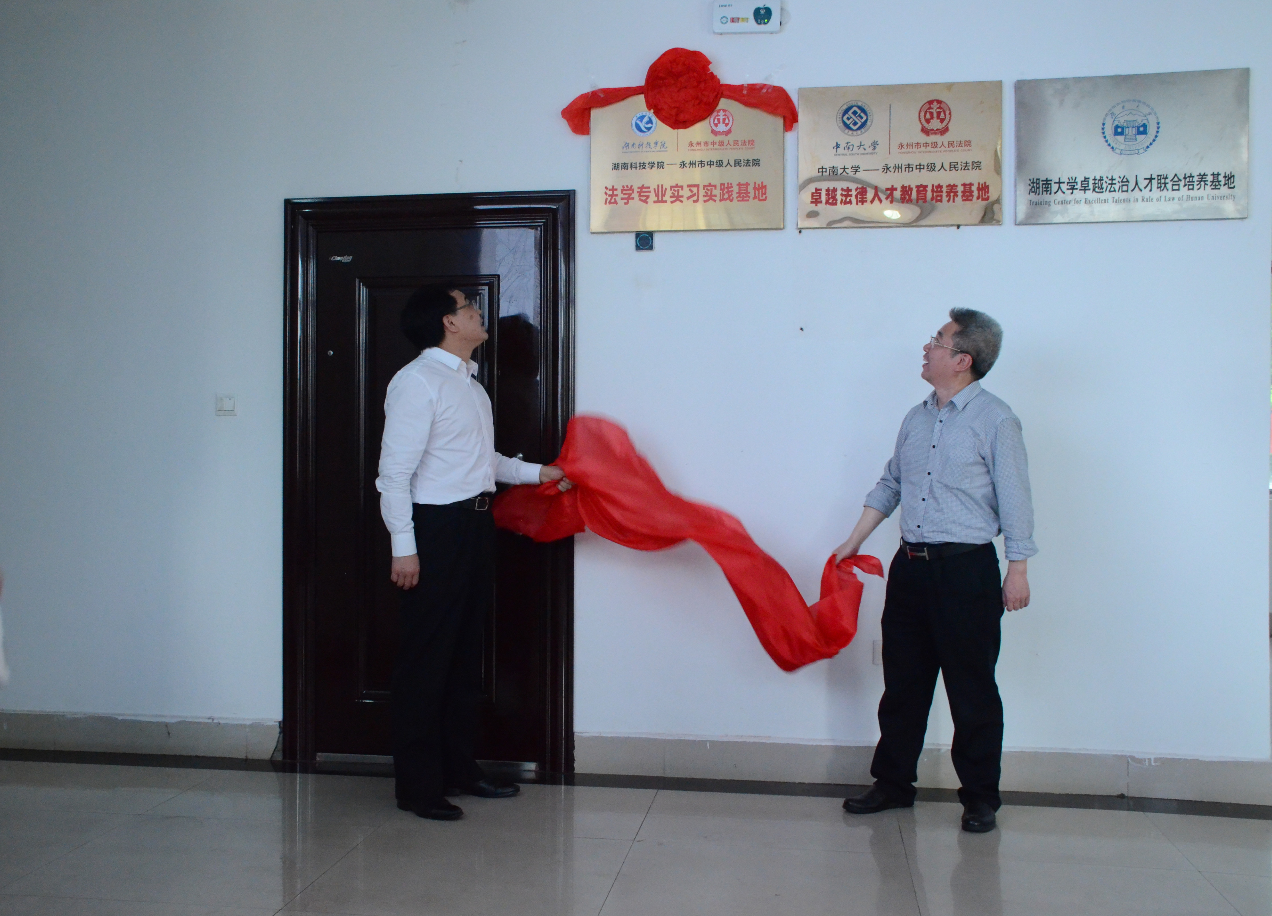 本网讯 4月9日上午,“九游在线法学专业实习实践基地”揭牌仪式在永州市中级人民法院举行,市中级人民法院党组书记、院长罗重海和校党委书记、校长曾宝成共同为基地揭牌。市中级人民法院副院长高和平、郭红艳,副校长李常健及人文与社会科学学院负责人等参加揭牌仪式。