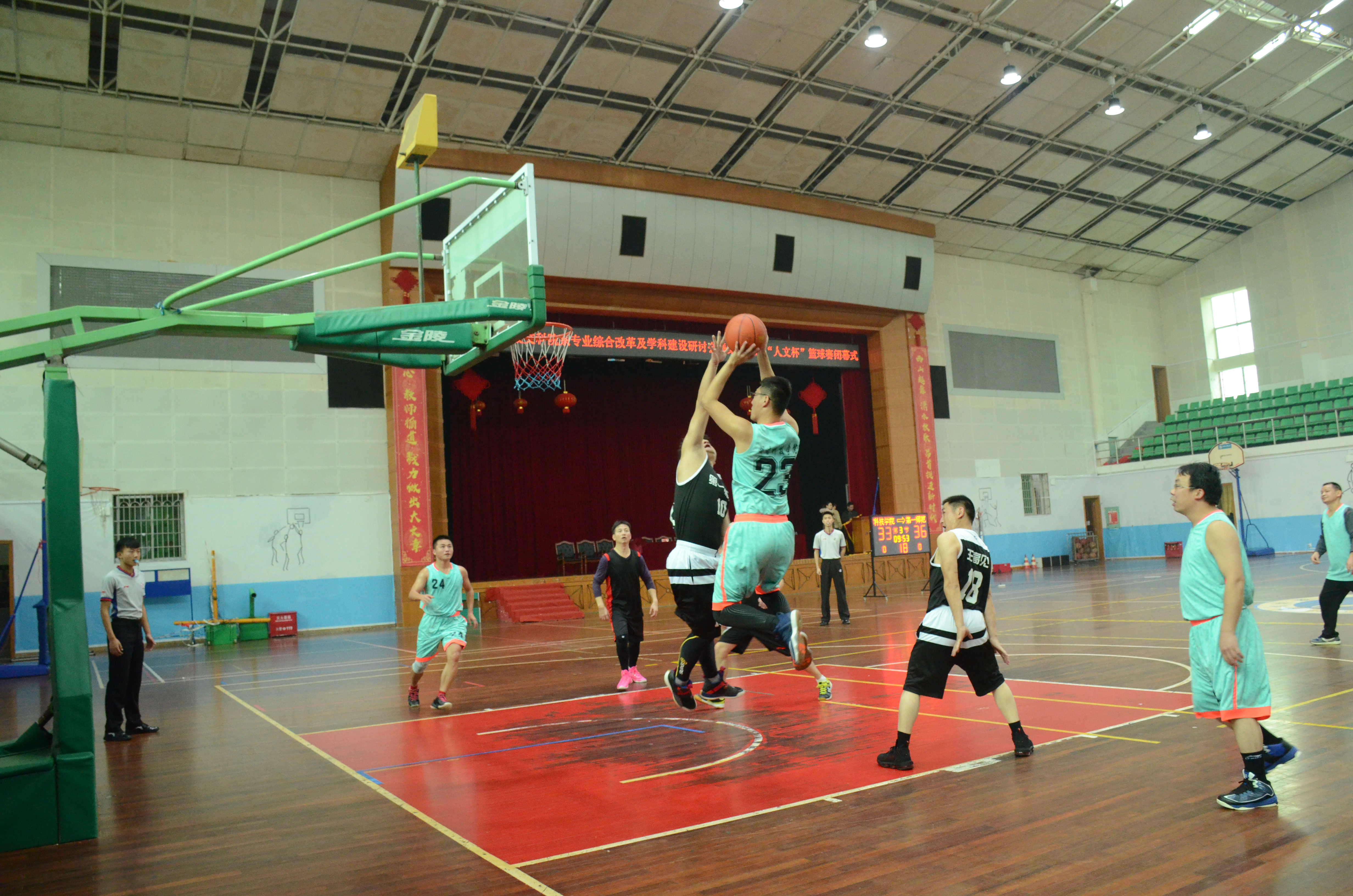 篮球赛场上,湖南大学、湘潭大学、长沙理工大学等十一支代表队进行了激烈角逐,每分必争。各队打出了自己的水平,发扬了风格,增进了友谊。最后,湖南第一师范学院、长沙理工大学、九游在线代表队分别获得一、二、三名。