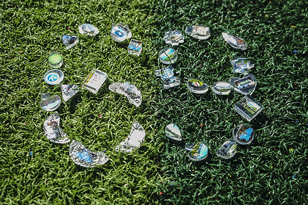 活动中,同学们精心拍摄了69张校园美景照片,并以树脂标本的形式将美景定格。69个树脂标本又与国旗一同摆成“69"字样,再拍成美图,在同学们微信群丶QQ群中广泛传播,以此表达我校学子对学校的热爱,对祖国的祝福。