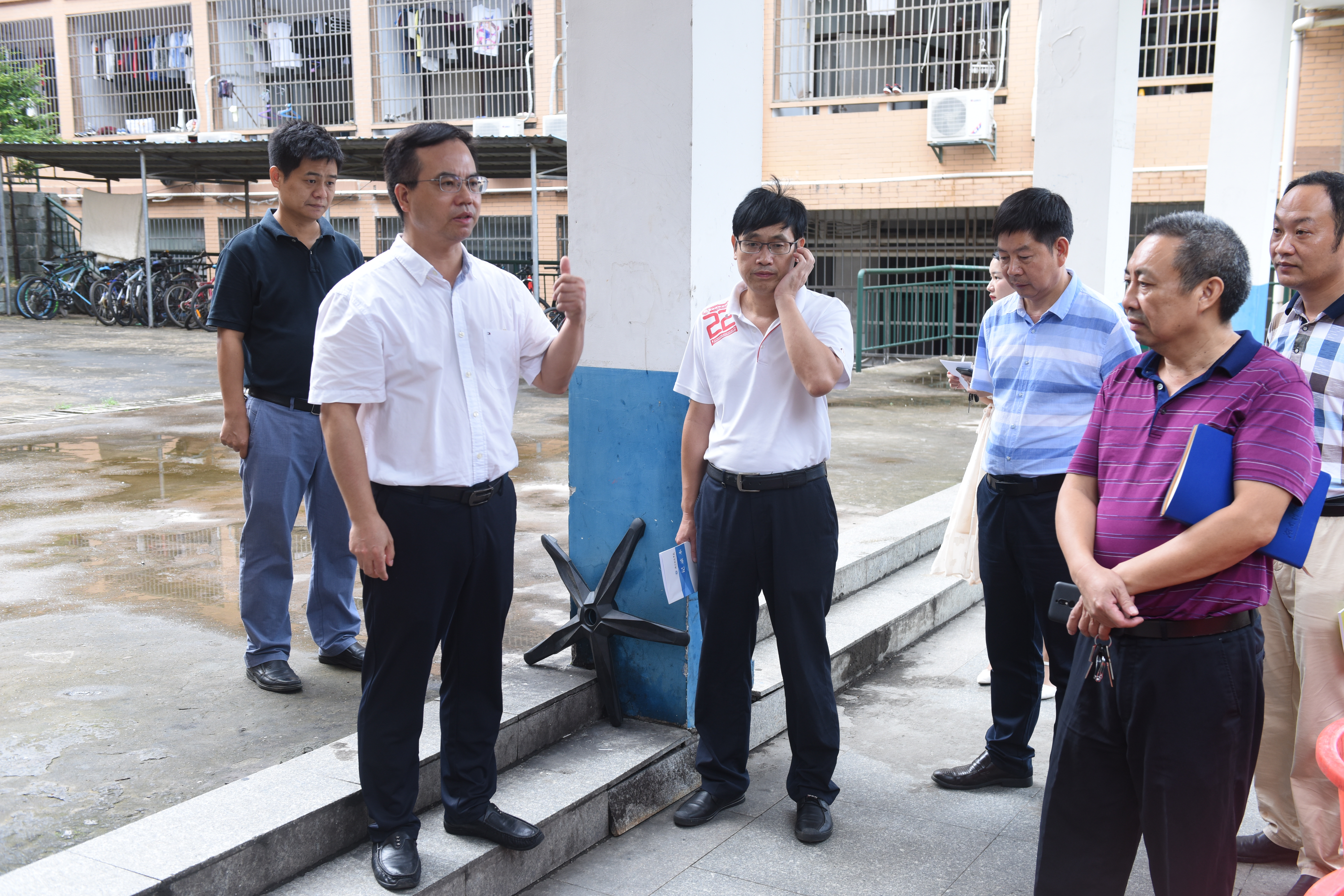 本网讯 9月1日下午,党委书记陈弘和党政办、宣传部、学工部、后勤服务总公司、基建处、保卫处等部门领导对校园环境进行了巡查。