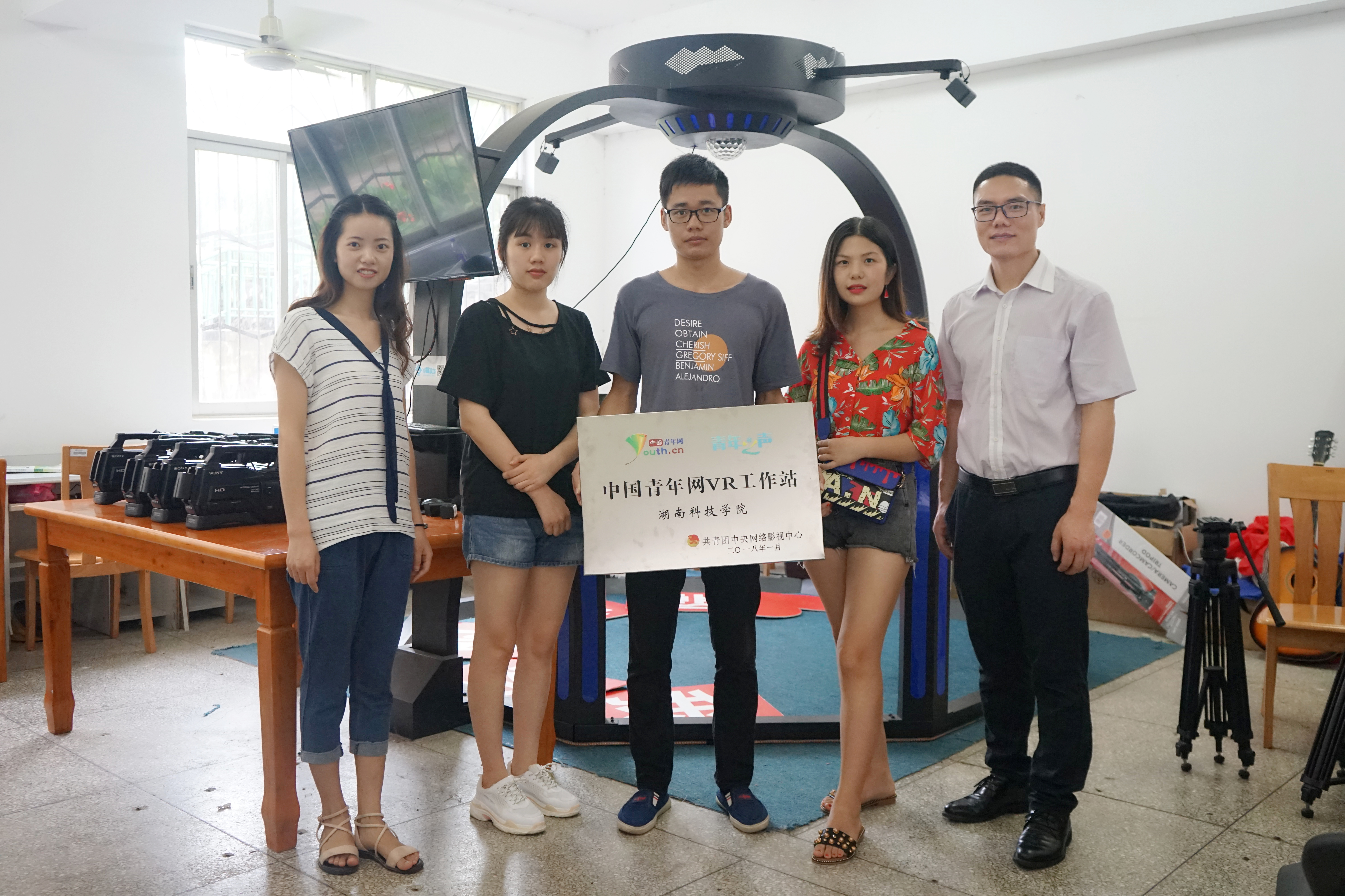 “‘以赛促学’不仅能让学生们实践理论知识,激发他们对专业学习的热情,更能促进教学相长。”借助这一契机,在积累了丰富的赛事指导经验后,2016年陈世灯老师在电信院创新中心成立了“影视创客空间”工作室。初期工作室主要从事影视作品、网络课程制作等工作。2017年在深圳尚观支持了一套VR设备后,工作室又与团中央中青网合作,正式挂牌成立了“团中央VR工作站”,成立了九游在线VR协会。