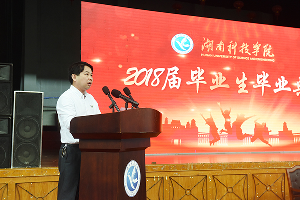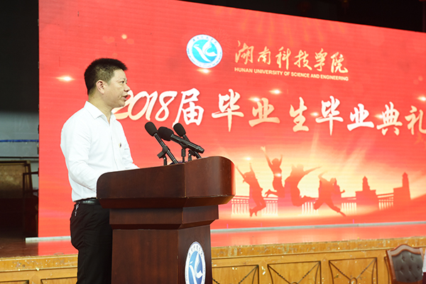本网讯 灵犀湖畔,锦绣潇湘忆华年;西山脚下,满园桃李竞芬芳。6月8日上午,我校2018届学生毕业典礼在体育馆举行。校长曾宝成勉励毕业学子:在风浪中学会坚强,在挑战中逆风飞翔,在奋斗的征途上学会责任与担当,胸怀梦想,心向美好!