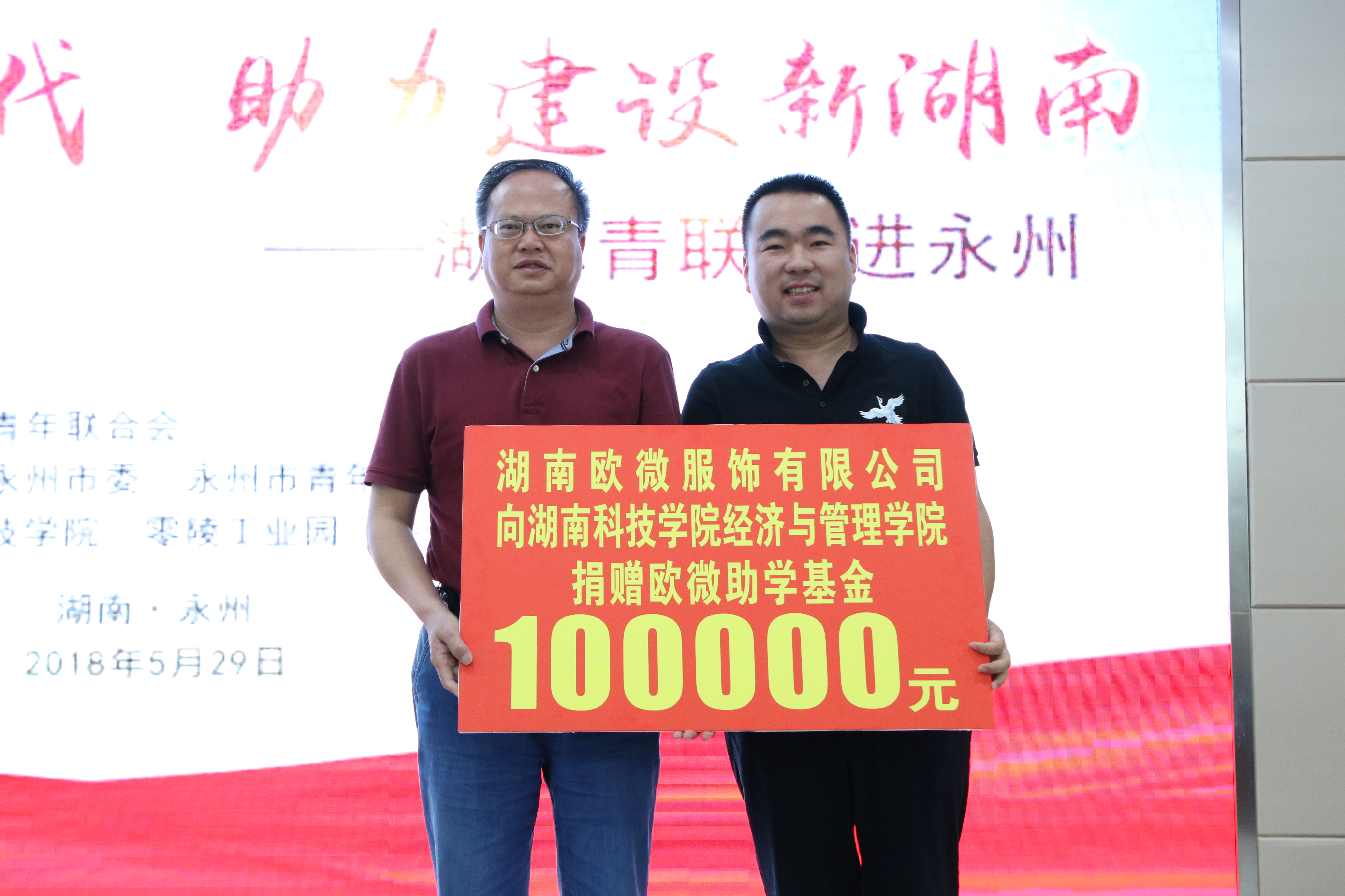 宣讲结束后,李玉龙向我校经济与管理学院“欧微助学基金”捐款10万元,用于资助该院贫困学子。