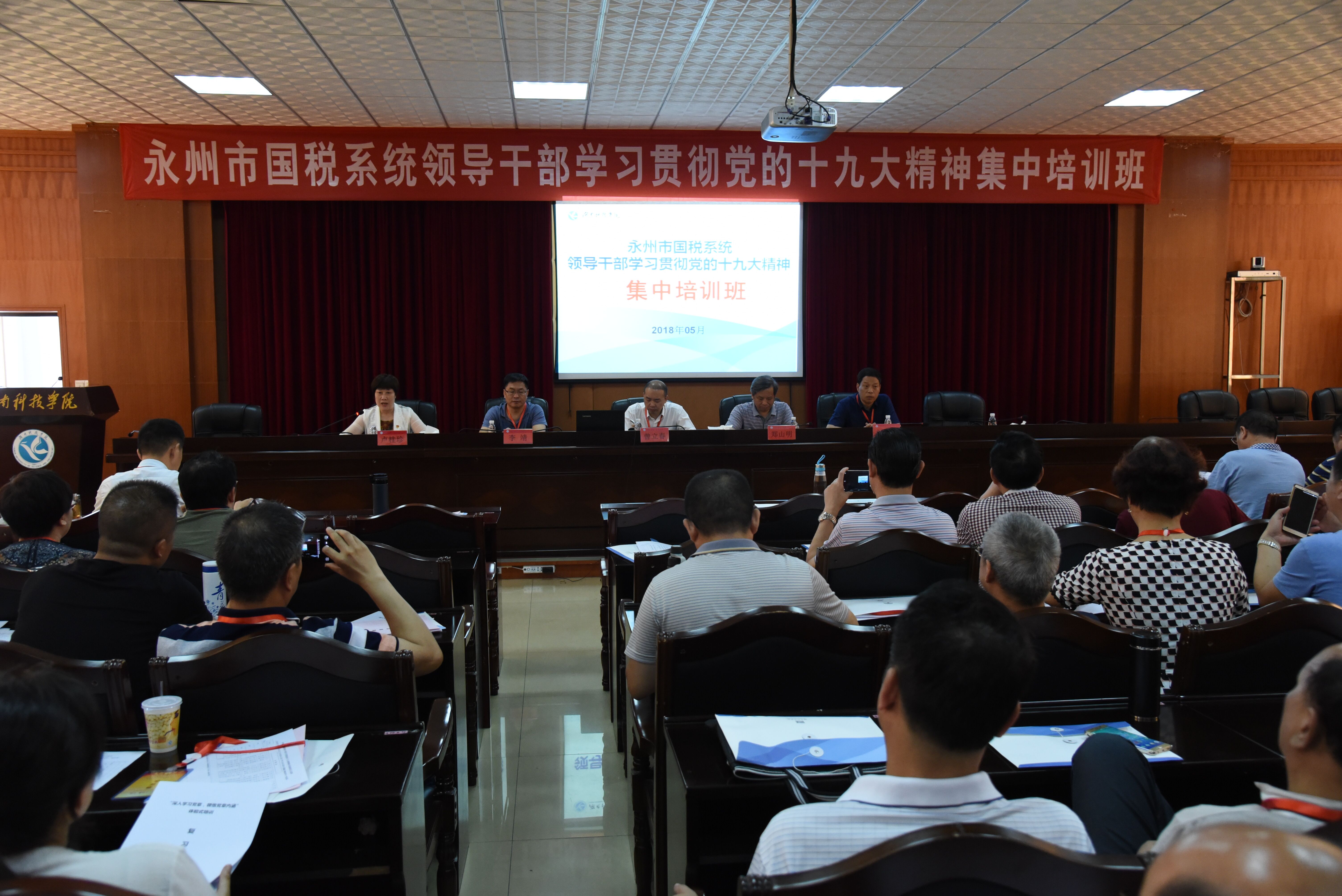 本网讯 5月21-25日,永州市国税系统领导干部学习贯彻党的十九大精神集中培训班在我校举行,副校长郑山明出席开班典礼并致辞。据悉,培训班由学校党委党校承办,培训学员89人,围绕学习党的十九大精神,以理论讲座、研讨交流、观看视频、体验式等丰富的形式组织开展学习。